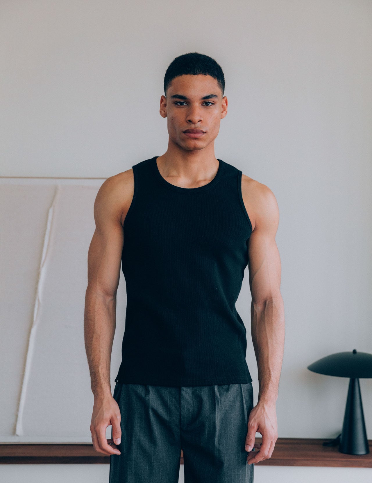 Gio Fitted Rib Tank, Black