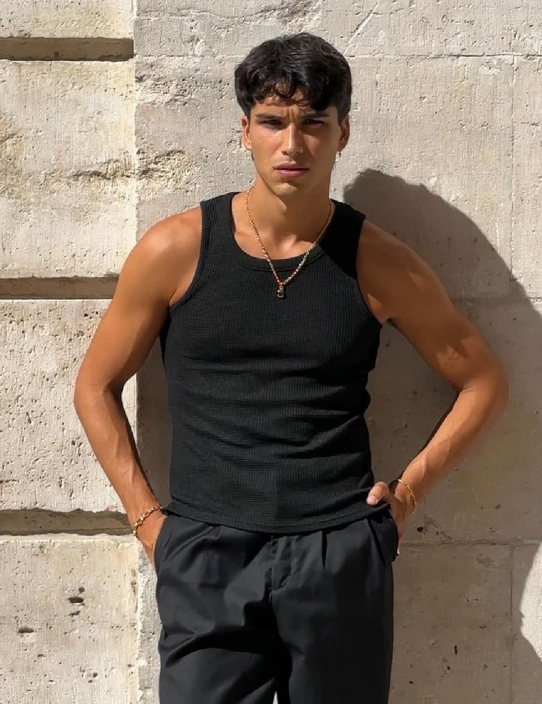 Andersen Waffle Tank, Black