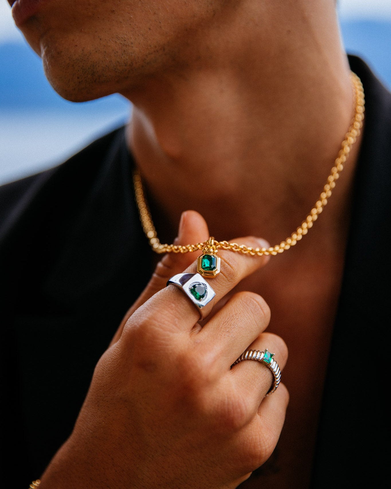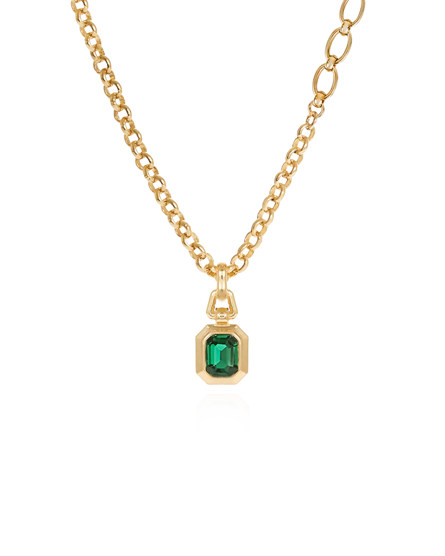 Material: 18k Gold Plated Brass with Emerald Green Glass Stone