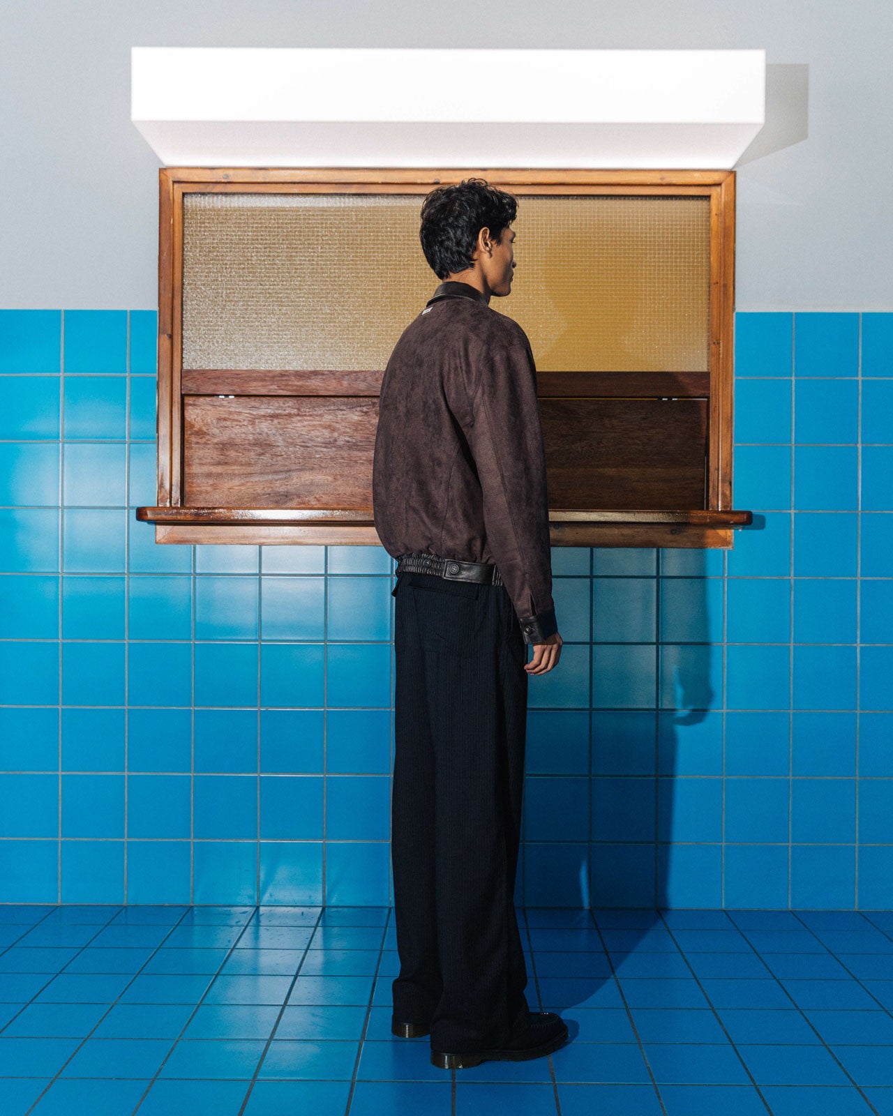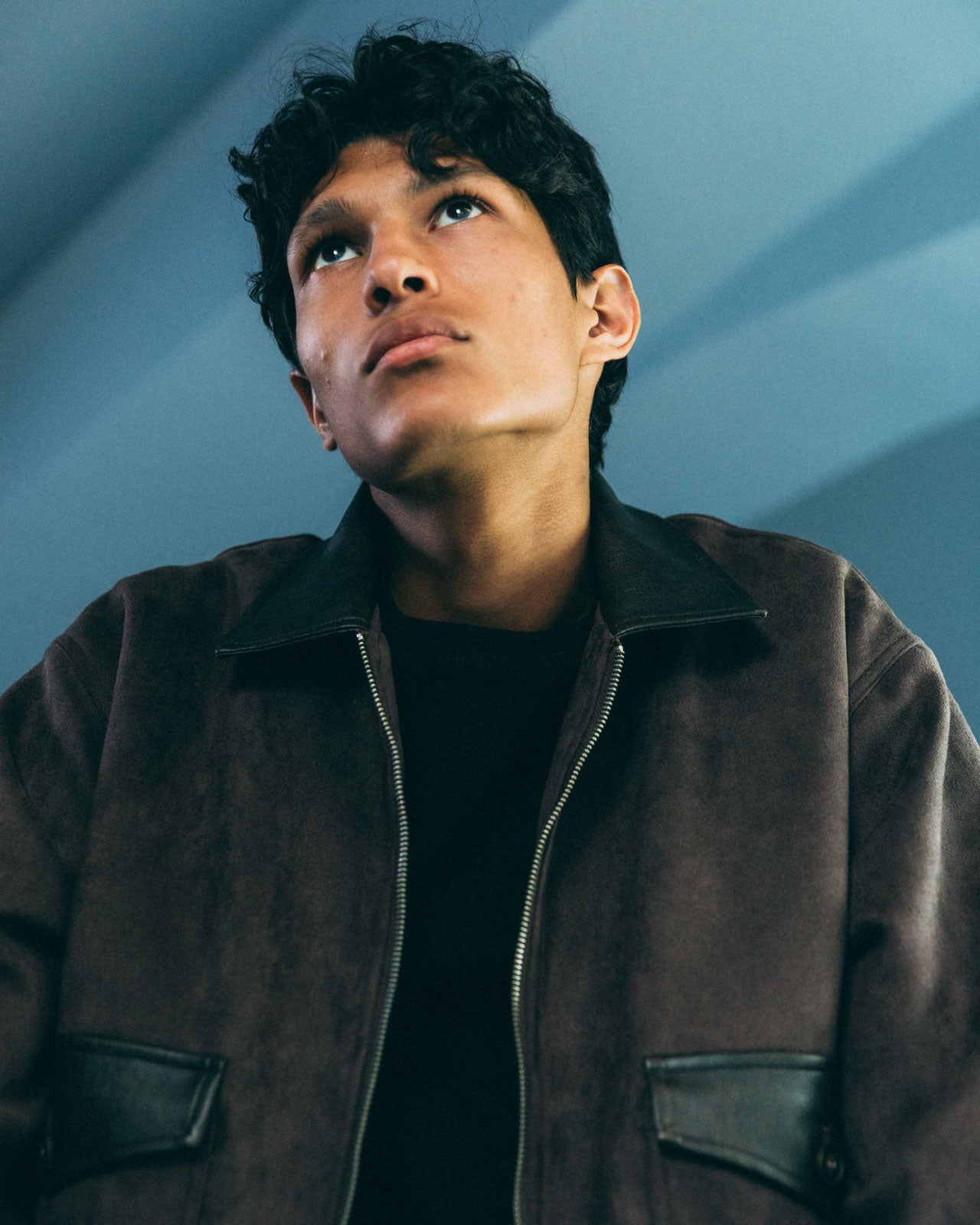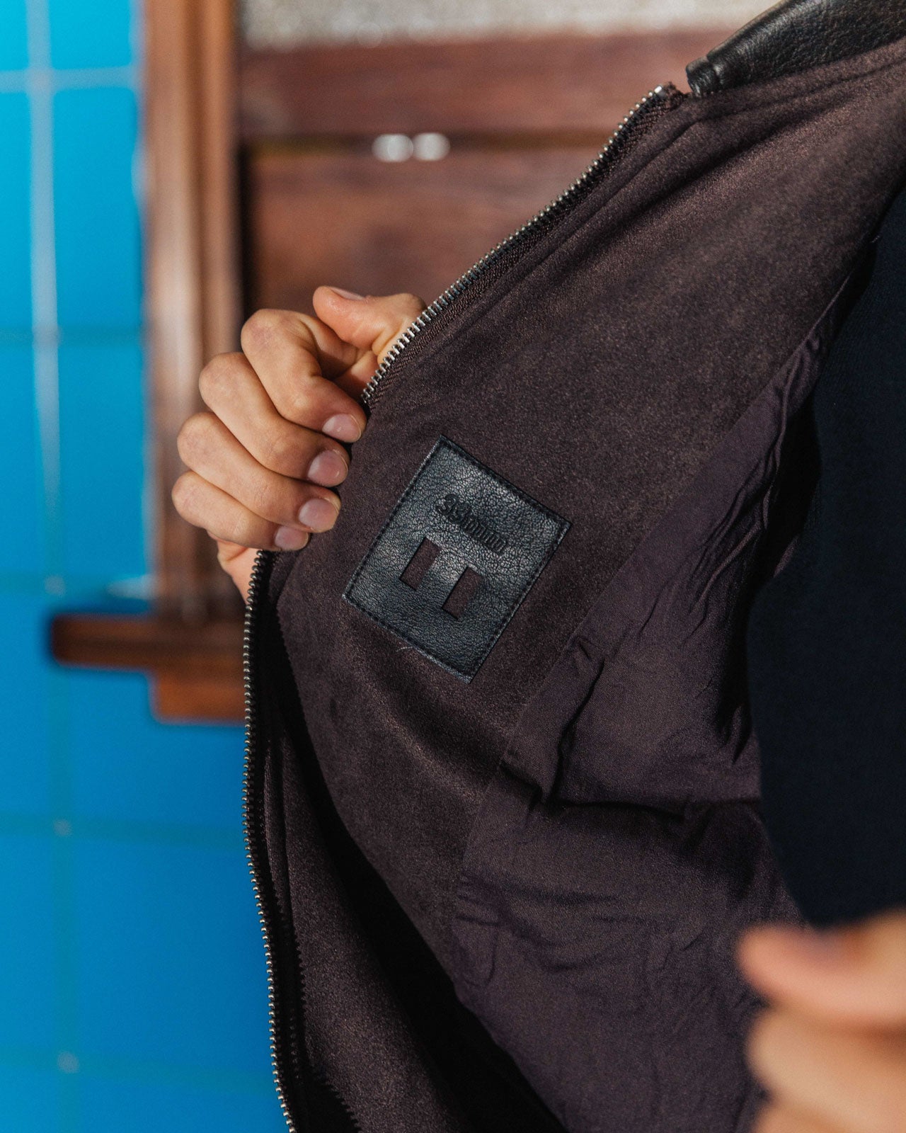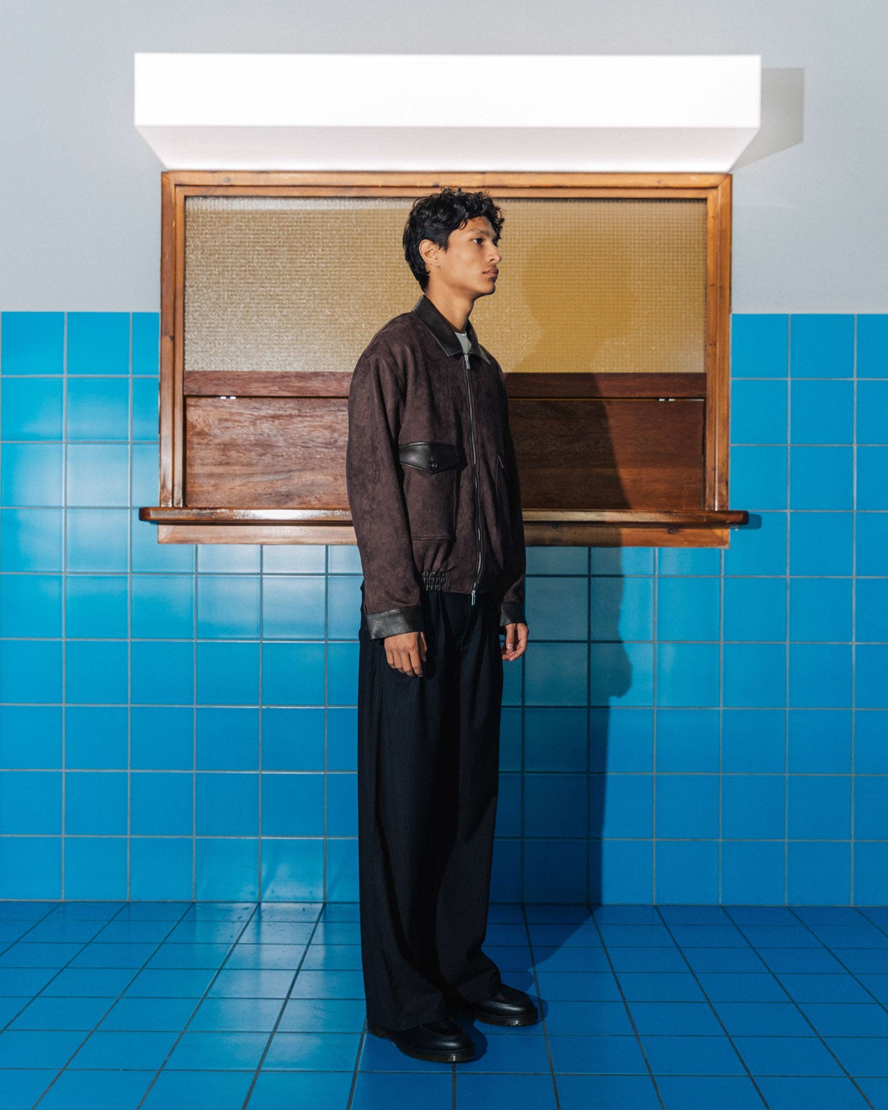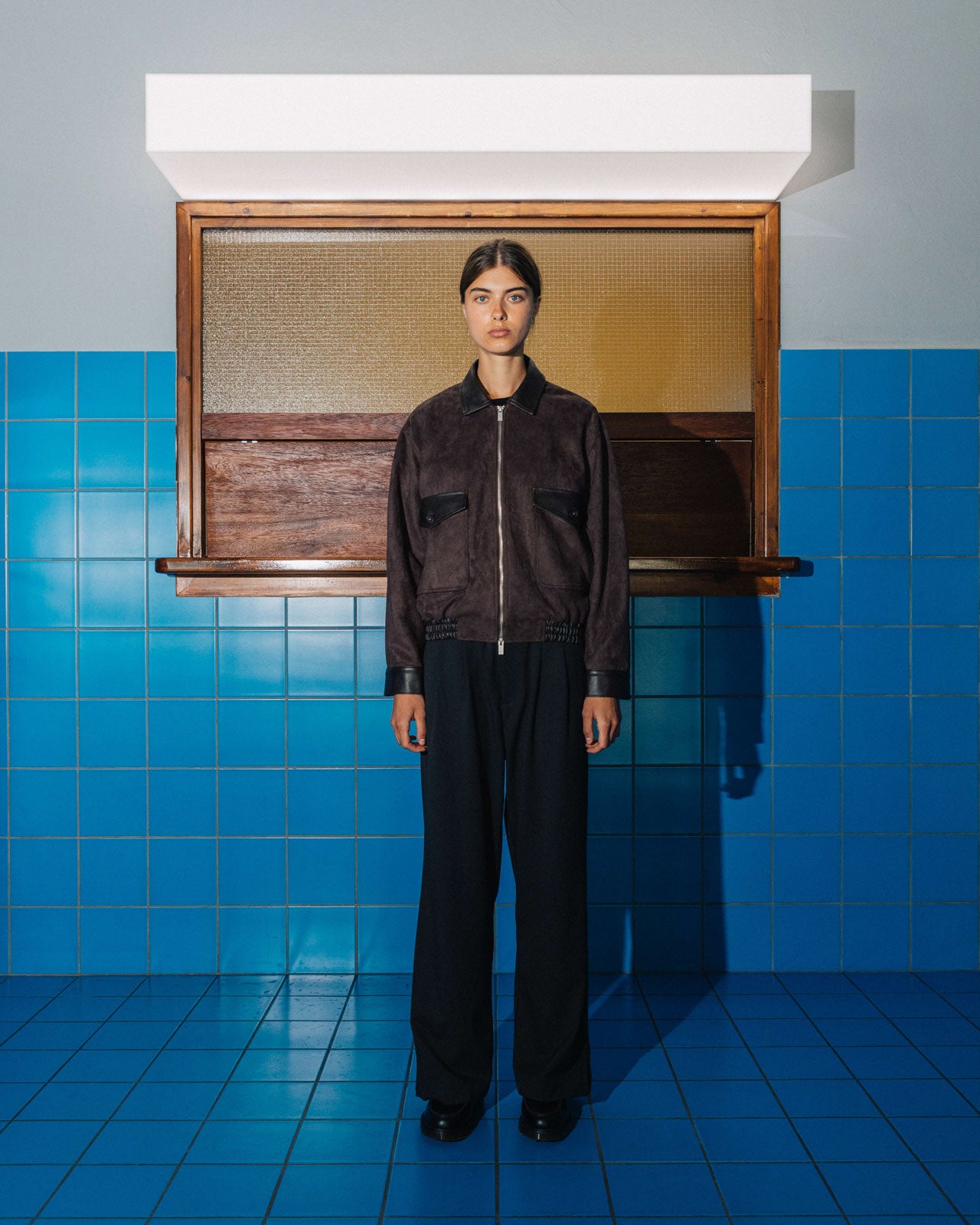Alvaro is a modern take on the G-1 bomber jacket, with a soft, brush-like finish. A nod to the classic design, it features leather accents across the cuffs, waistband, and collar. Two double-layered pockets with contrast flaps and dyed-to-match buttons tie the piece together. The details continue inside with an internal chest pocket and leather lash tab.
