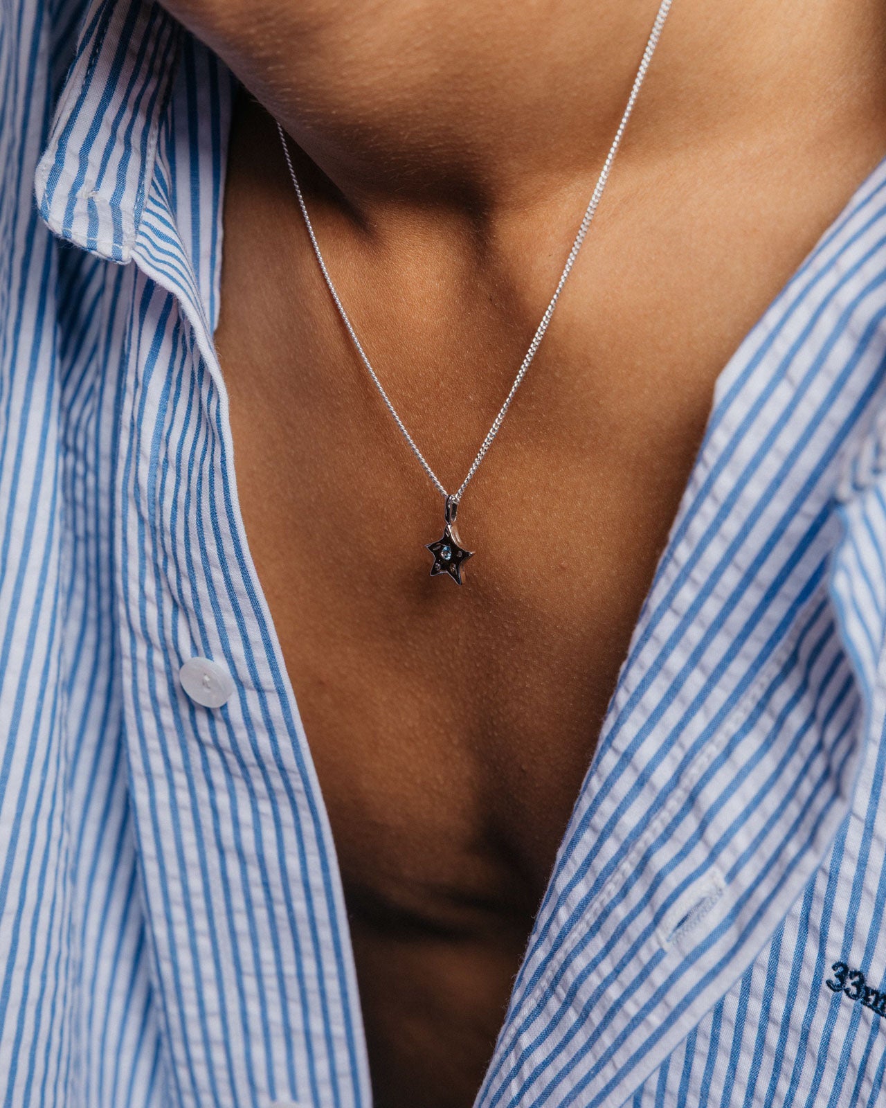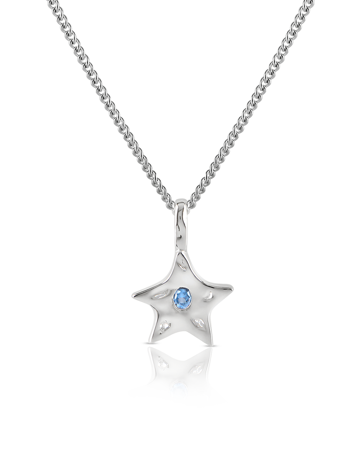 A star to wish upon. Crafted from Sterling Silver with fluid, molten forms and accented by a Montana Blue Cubic Zirconia gemstone. Aster captures the organic beauty of our universe.