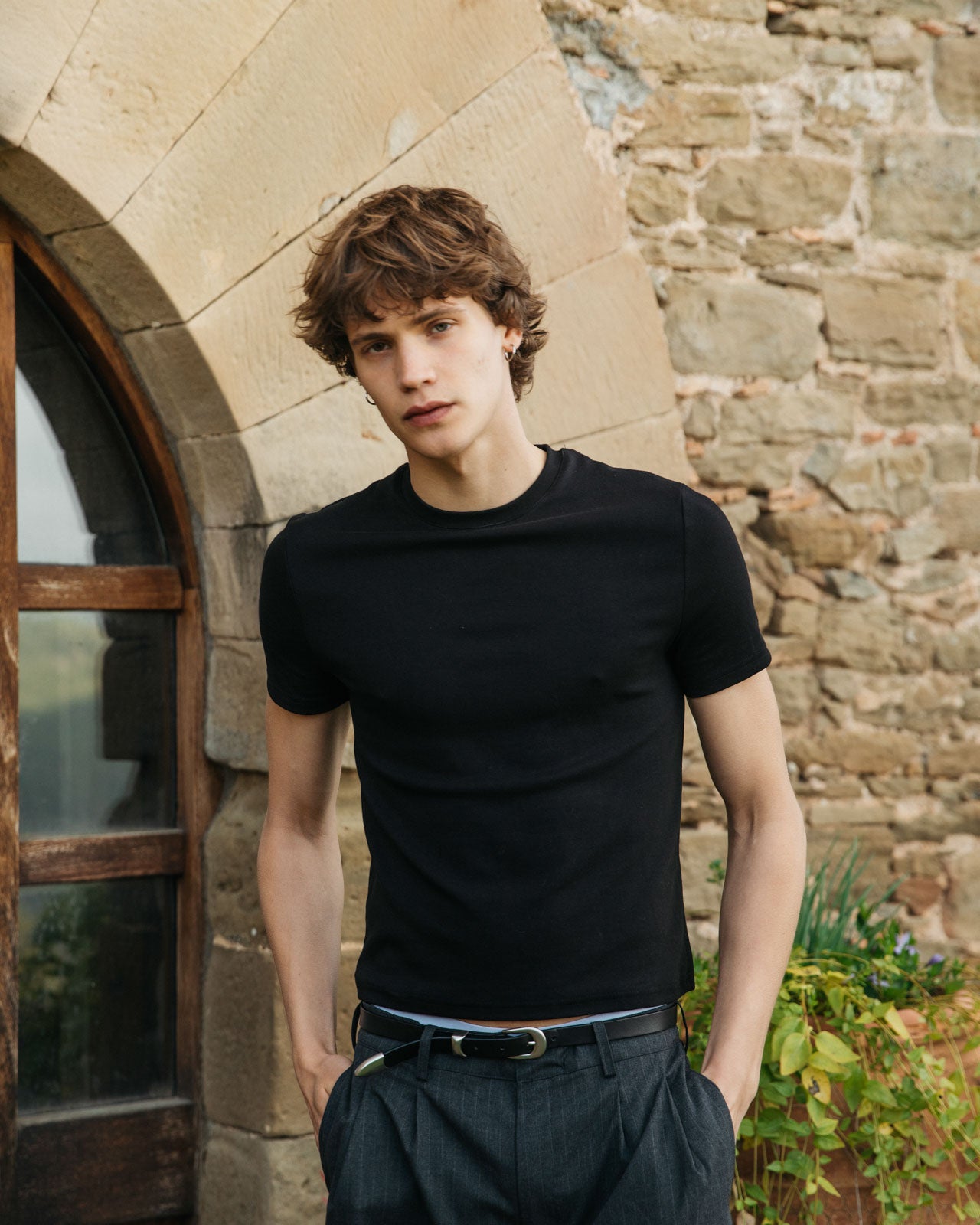 This is the perfect cropped tee for those who prefer a more snug fit. It hugs the body to perfection and is designed to sit just above your waist and did I mention the material feels like you're being enveloped by a silky smooth duvet?