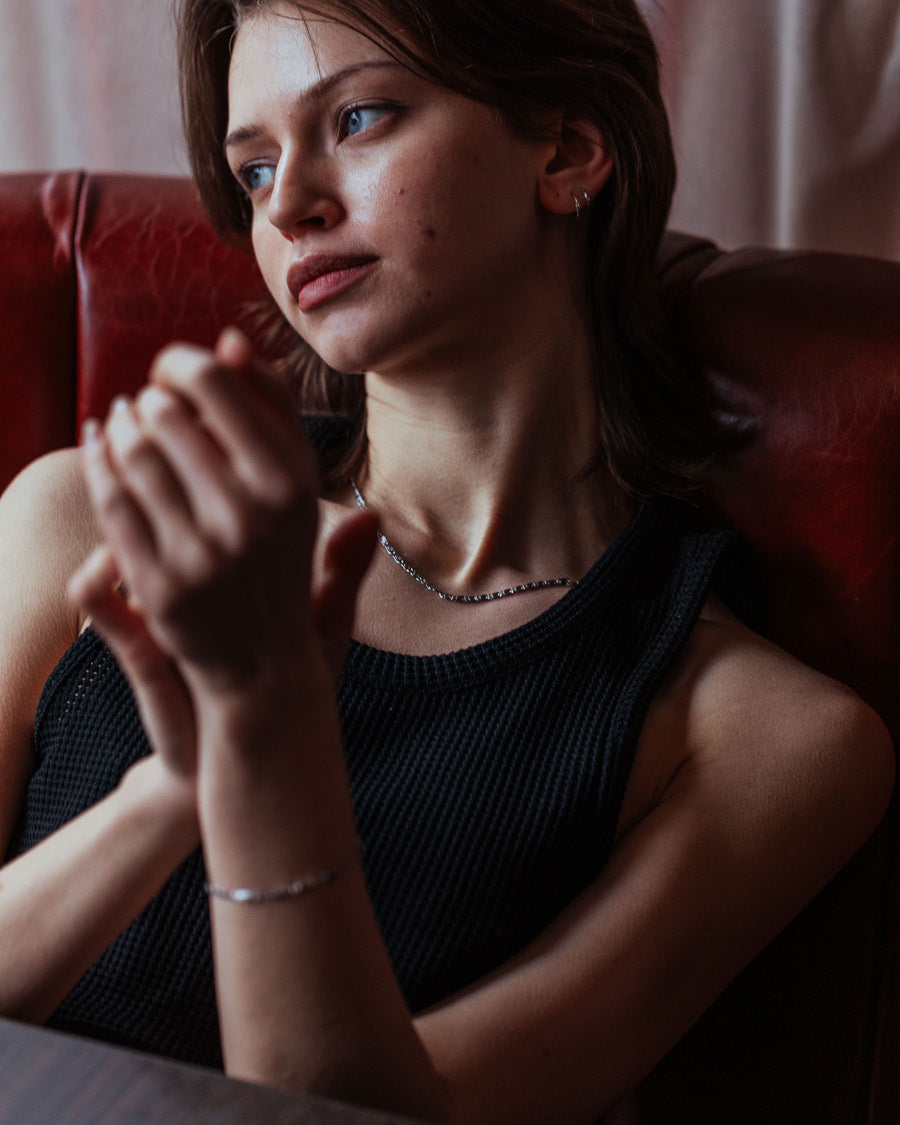 We recommend avoiding contact with chemicals such as soaps, perfumes or chlorine. Store in the cotton pouch provided, separately from any other items to avoid scratches.