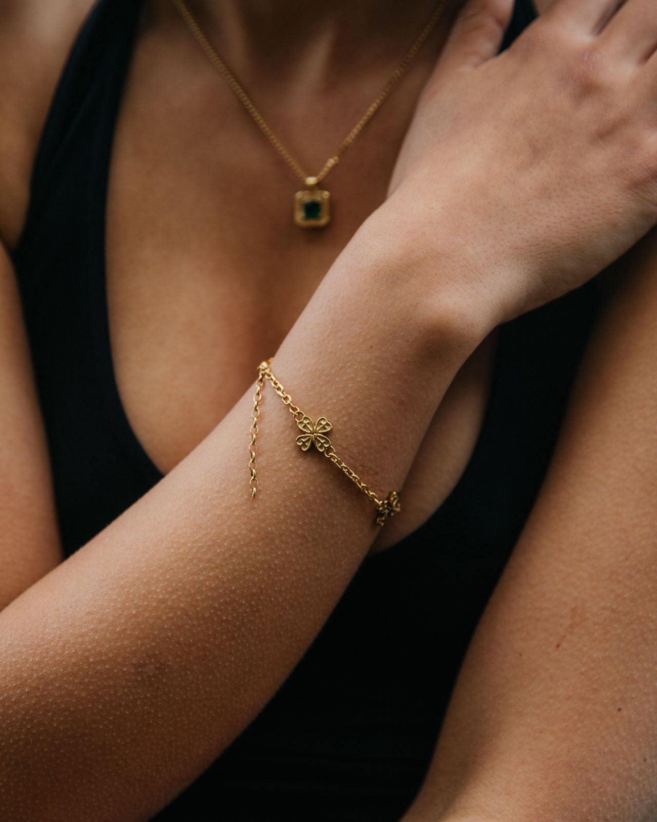 If clovers are lucky, then how lucky are you if you wear three? The companion to Chance, Caden is a delicate chain bracelet featuring 3 clovers, for a triple dose of luck with every wear.
