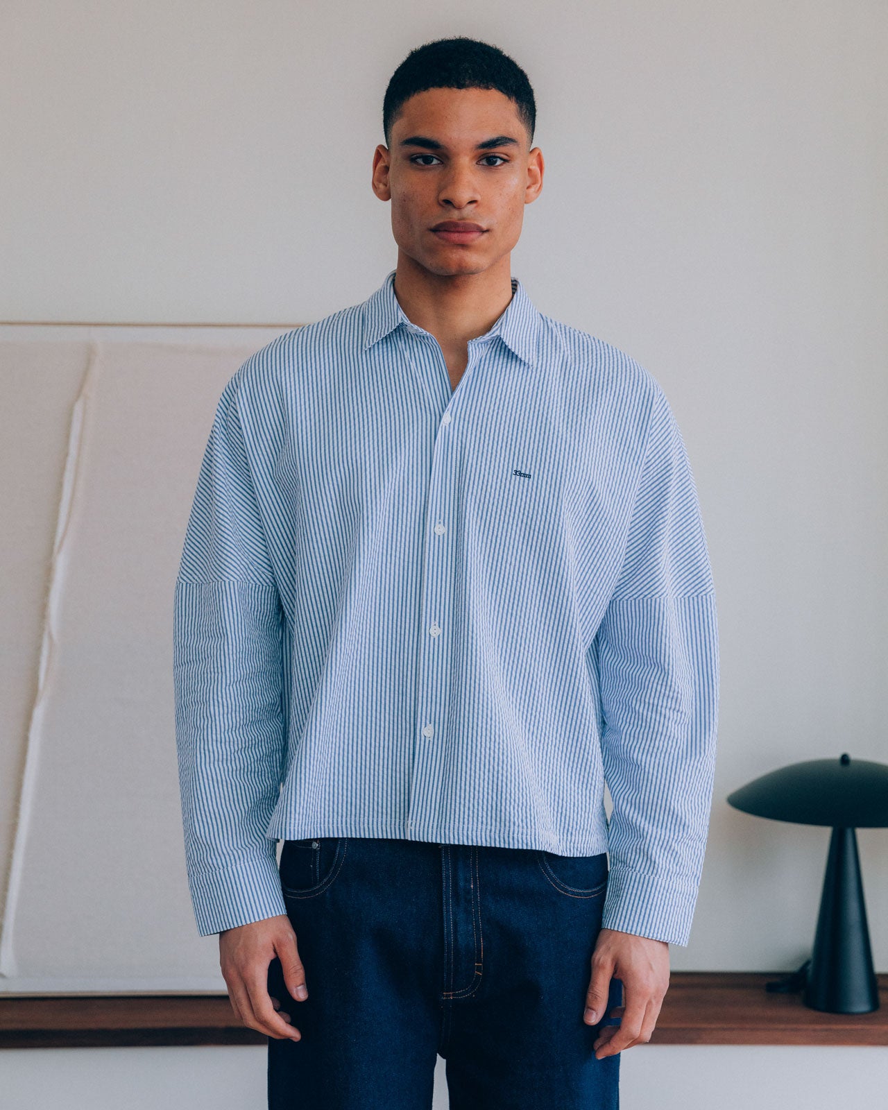 A classic reimagined for today, rooted in the quiet confidence of a traditional striped shirt. Elevated through our signature silhouette and a delicate seersucker texture.