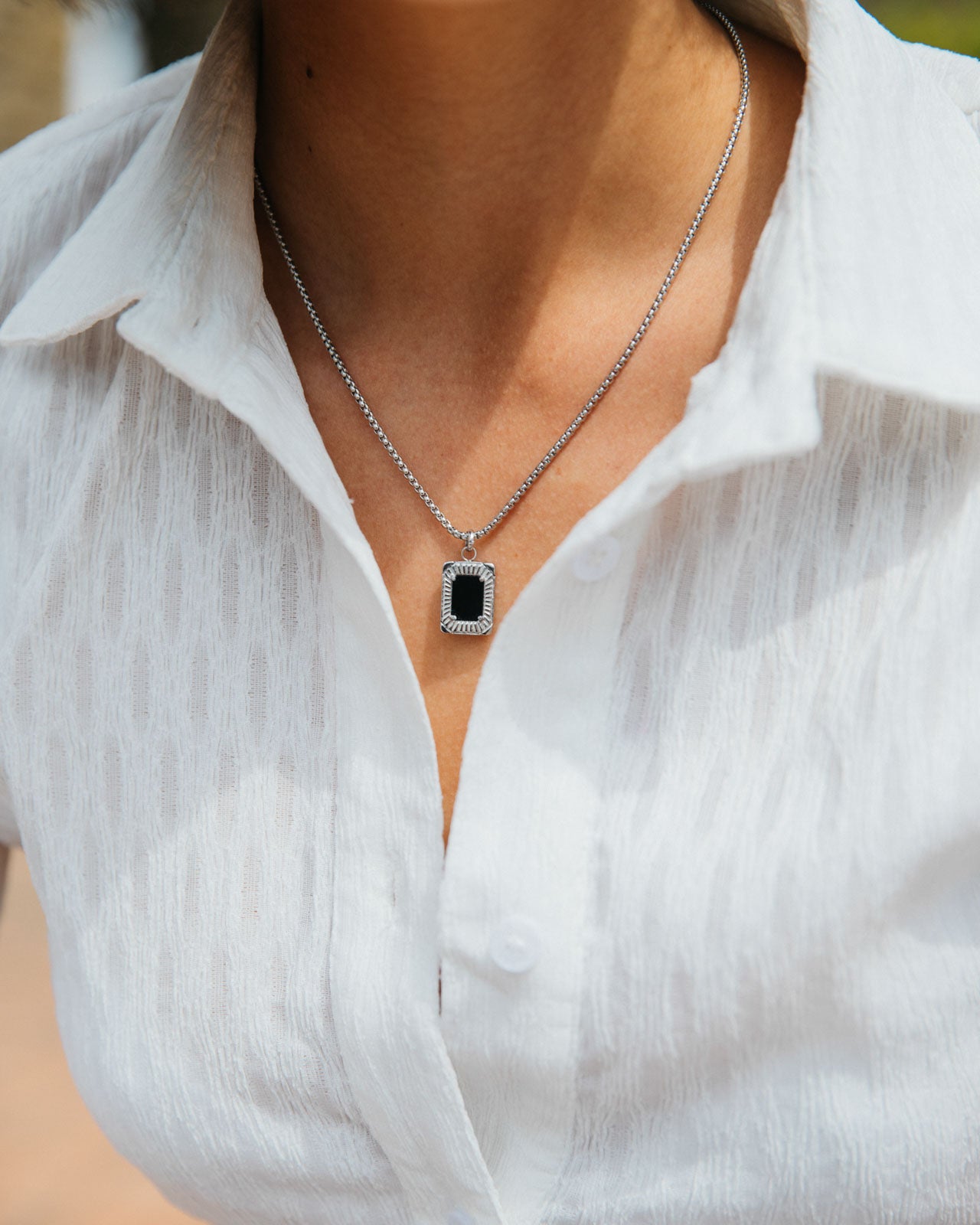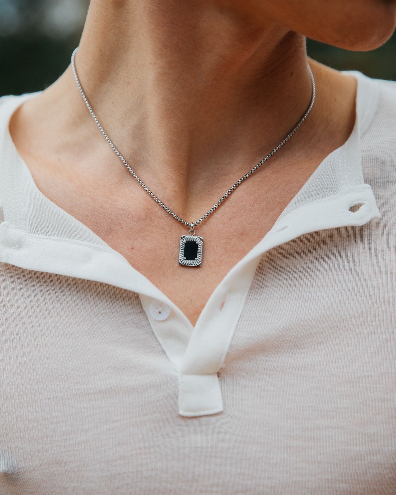 There’s something about Dalton, it draws in the soul. With a rectangle pendant and statement black onyx stone, Dalton serves as  a worthy protector.