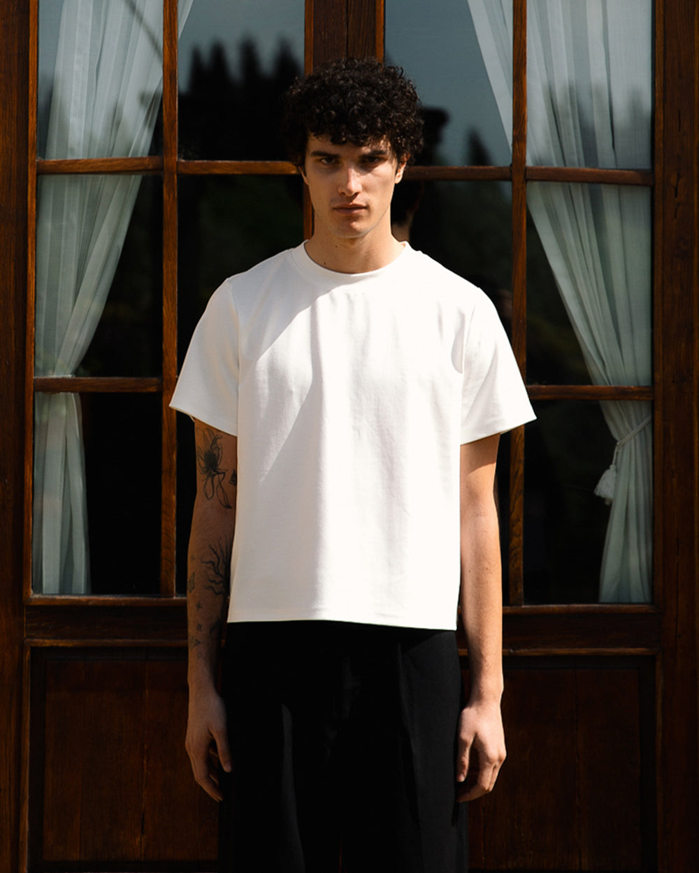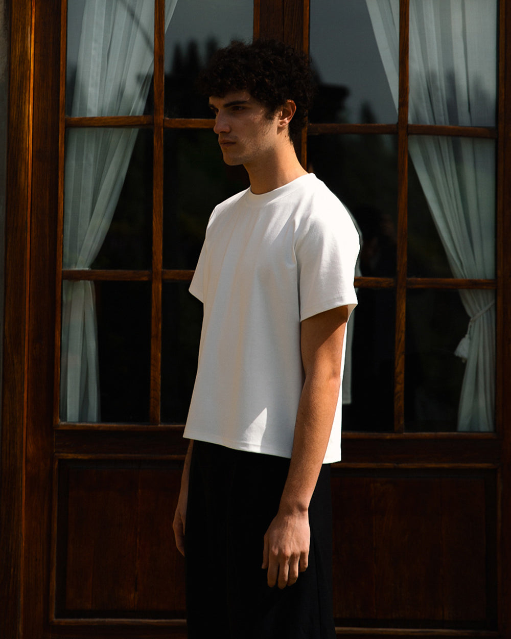 Daniel is literally the perfect cropped boxy tee. Designed to sit just above your waist with a slightly dropped shoulder and did I mention the material feels like you're being hugged by a silky smooth duvet?