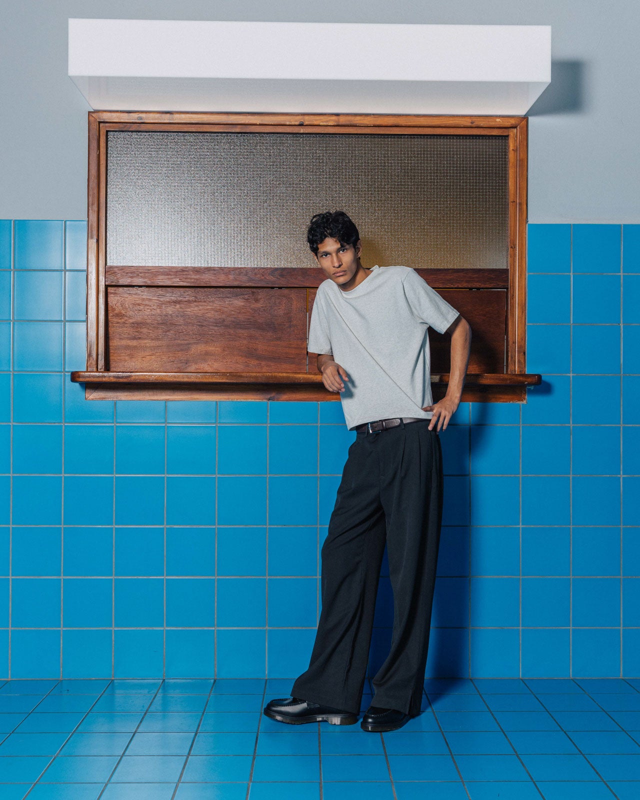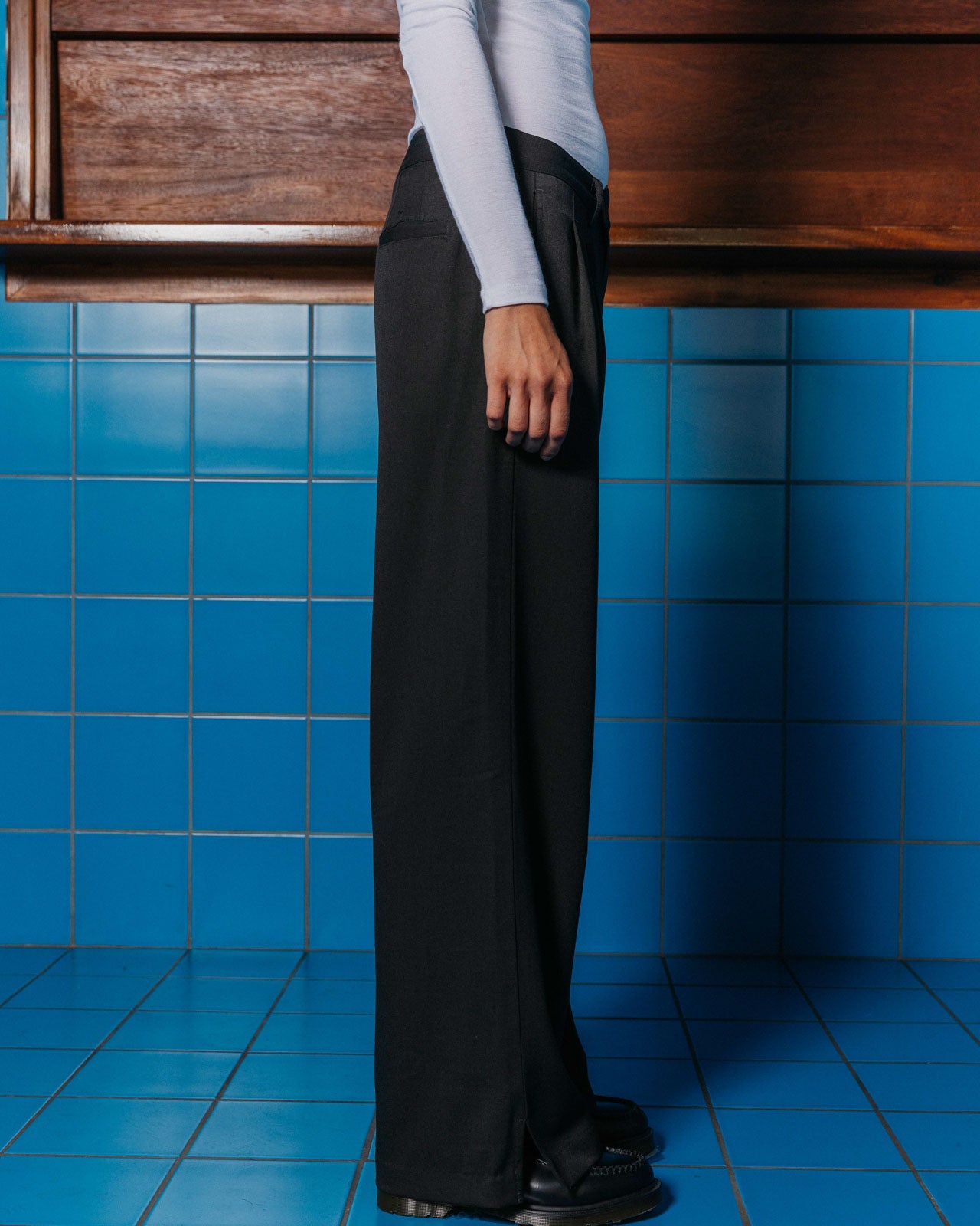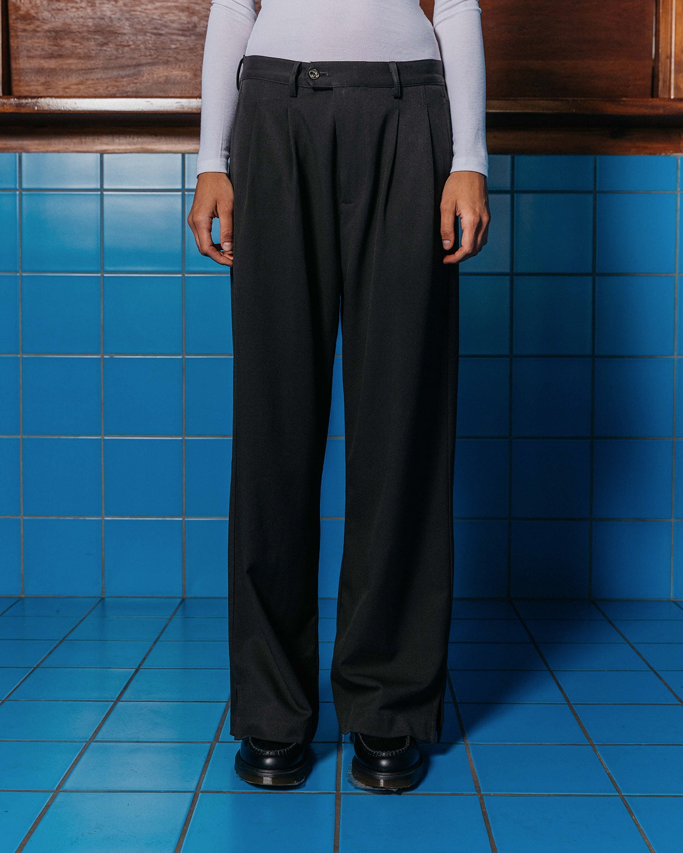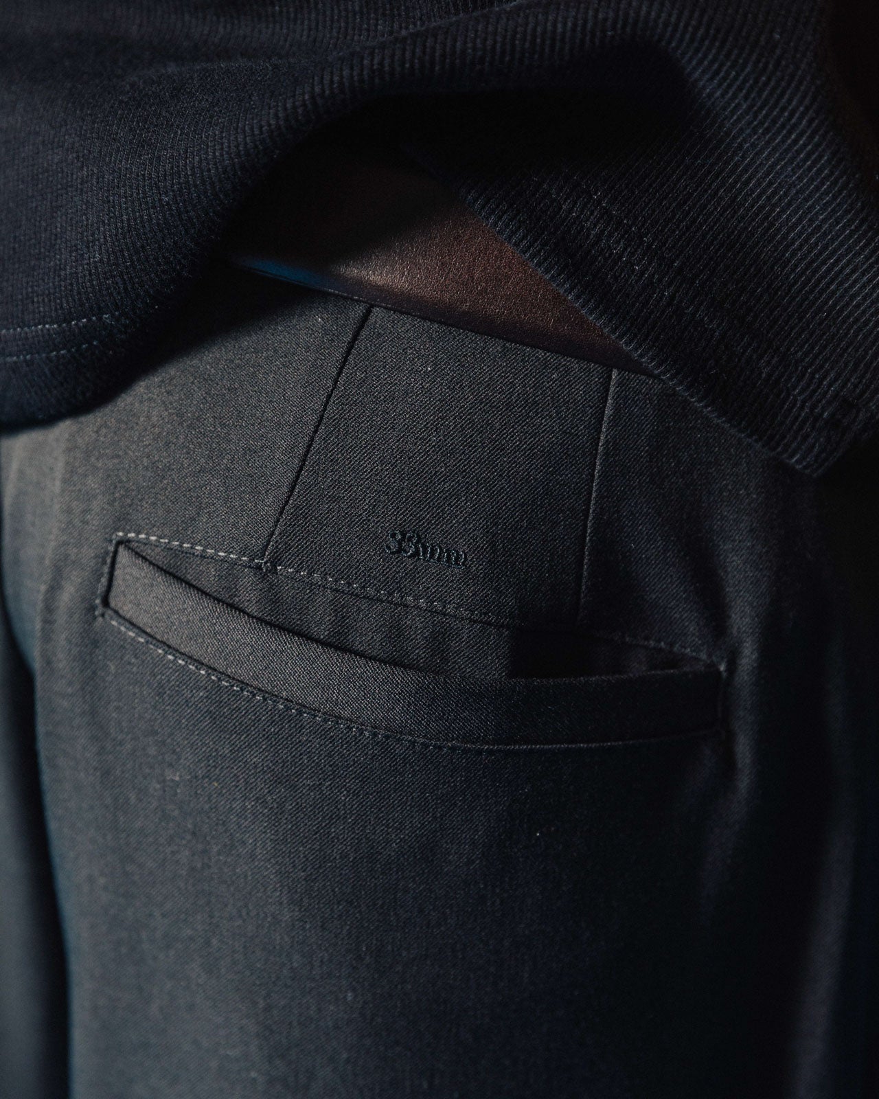 The same fit as Dylan, with the added elegance of a subtle pinstripe. With an adjustable internal white waistband for a snatched fit or fold-out look. Details include rear welt pockets and our embroidered logo.