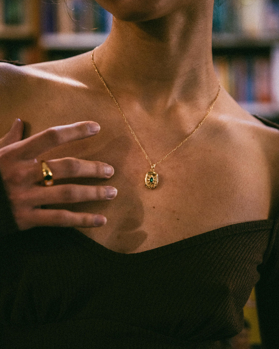 Material: 18k Gold Plated Brass with Emerald Green Cubic Zirconia