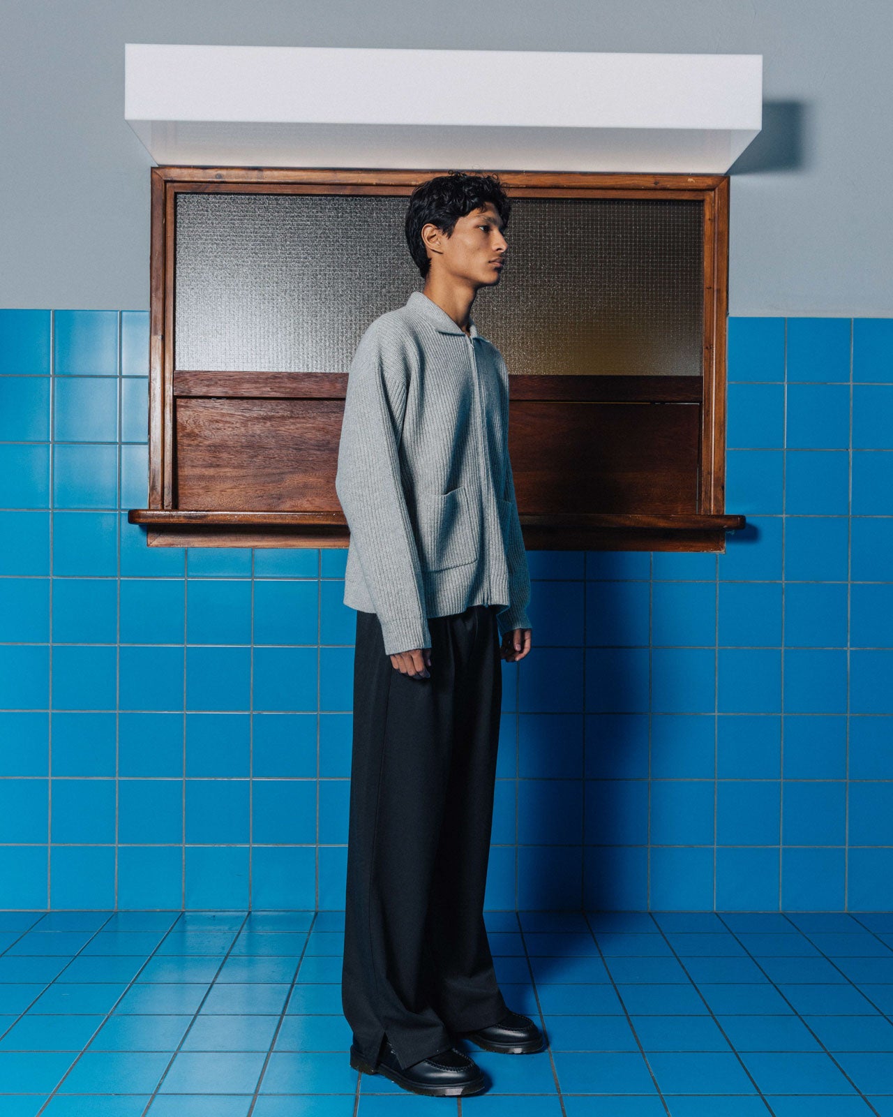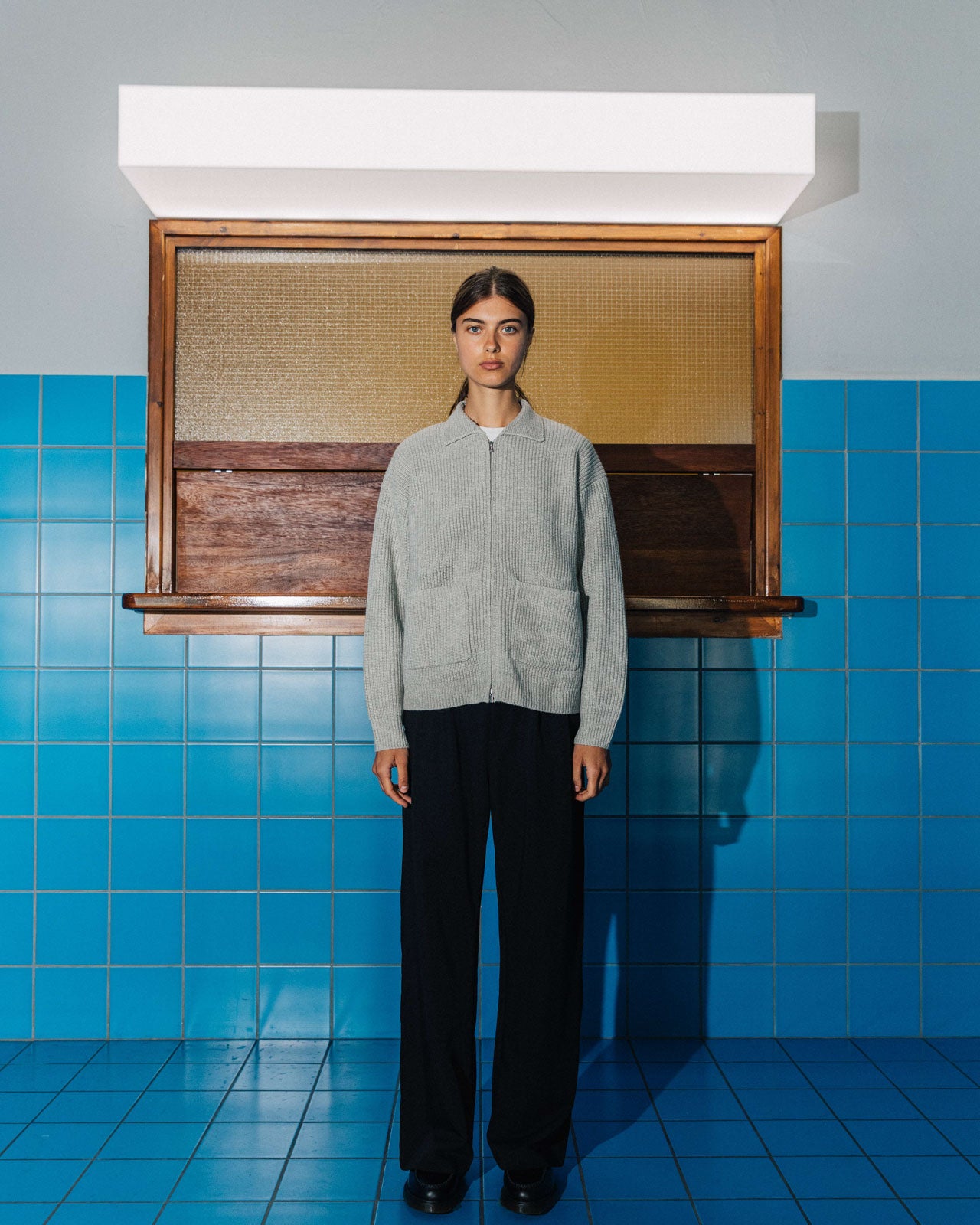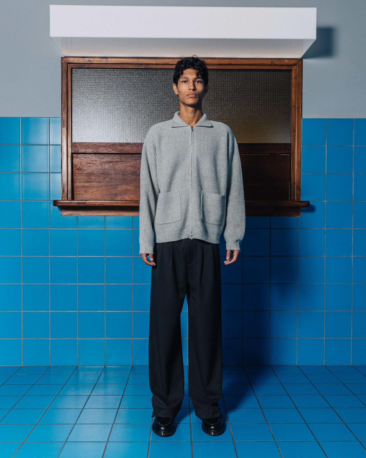 A heavyweight knit zip-up with a flat-edged knit collar and front patch pockets. Adorned with double ended branded zips so you can layer and style it the way you want to.