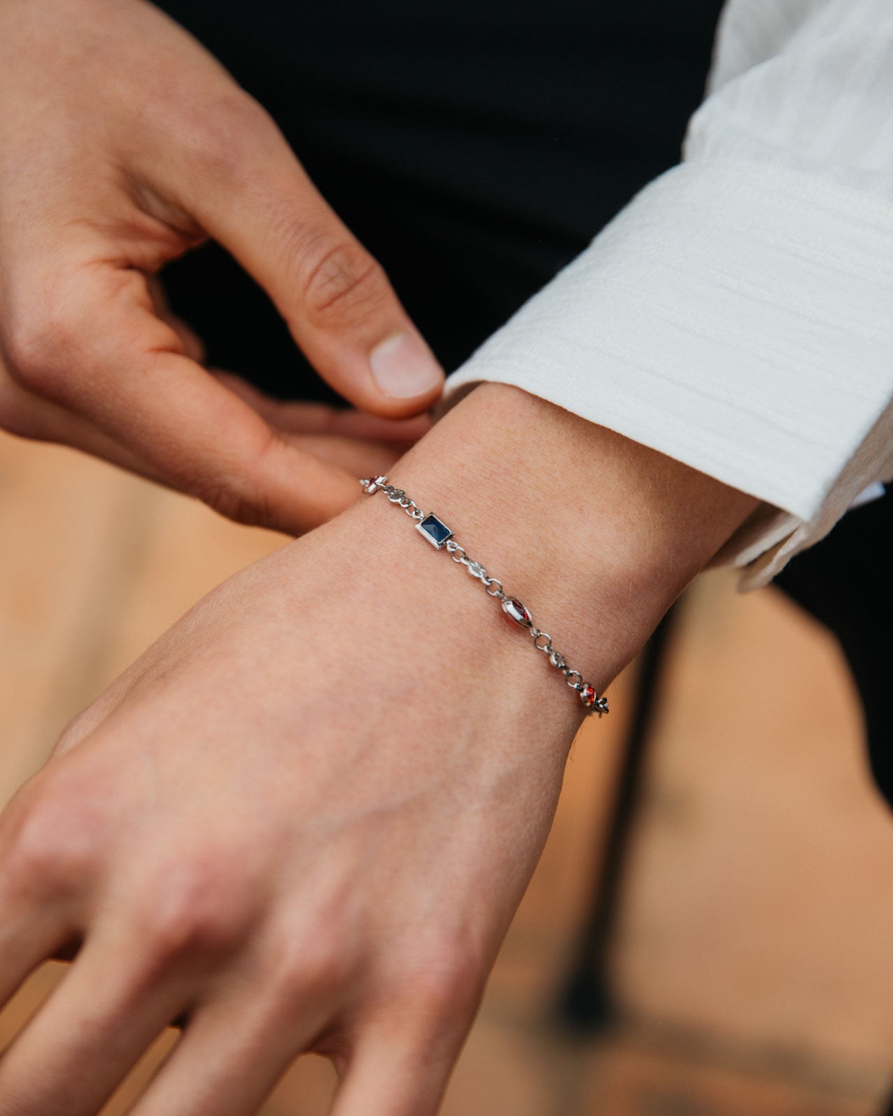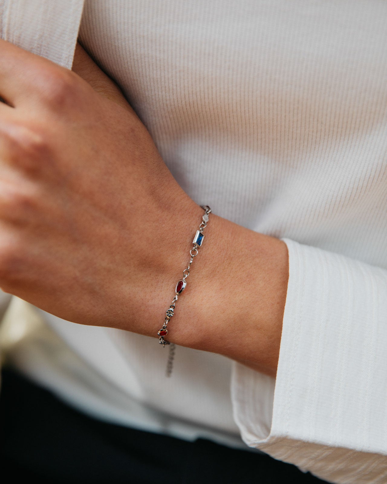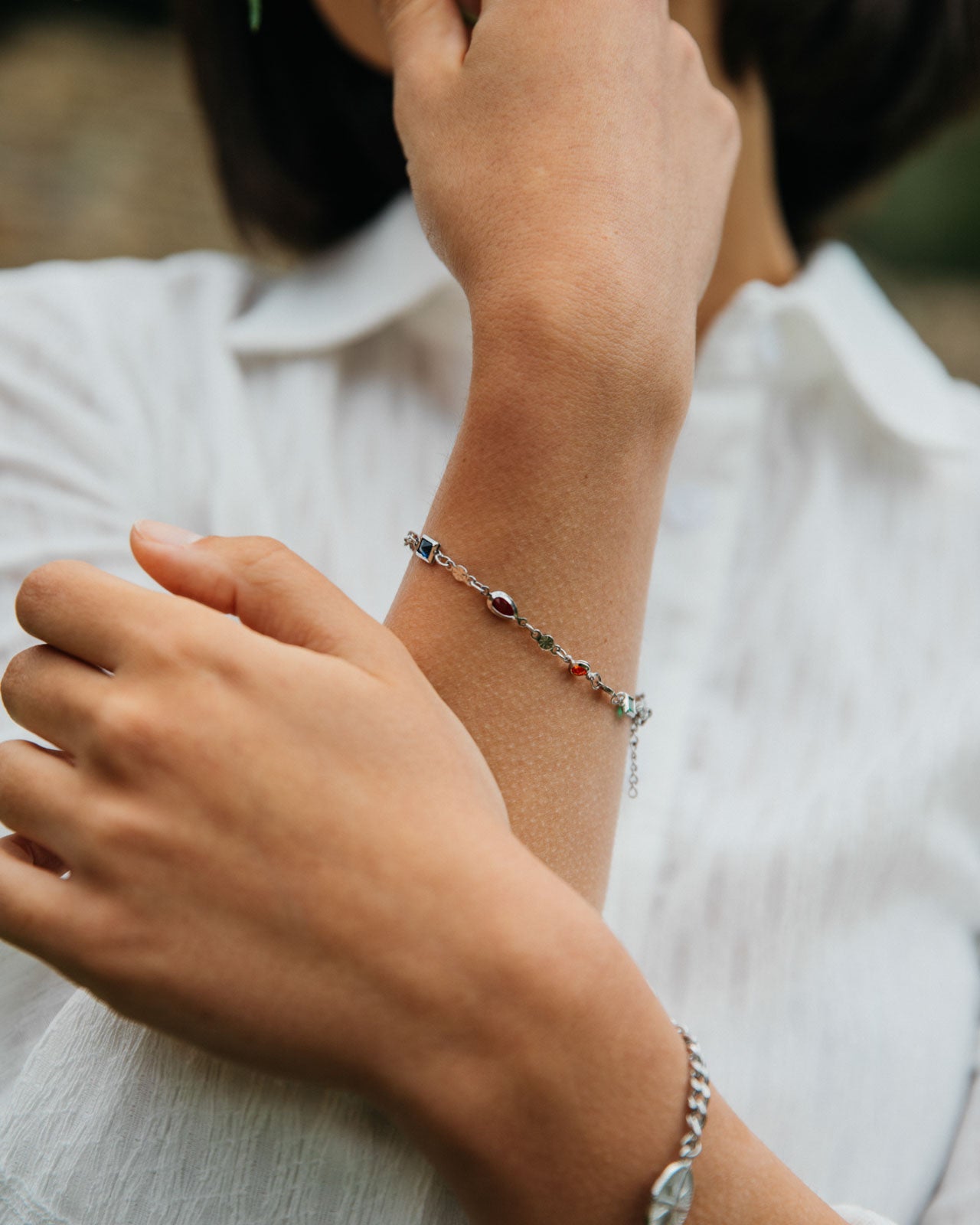 Droplets of summer that glisten on the wrist. Think of the rainbow effect of a crystal hanging in a window, that’s the magic of Espina.