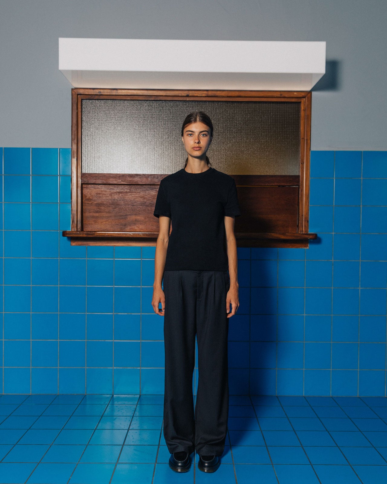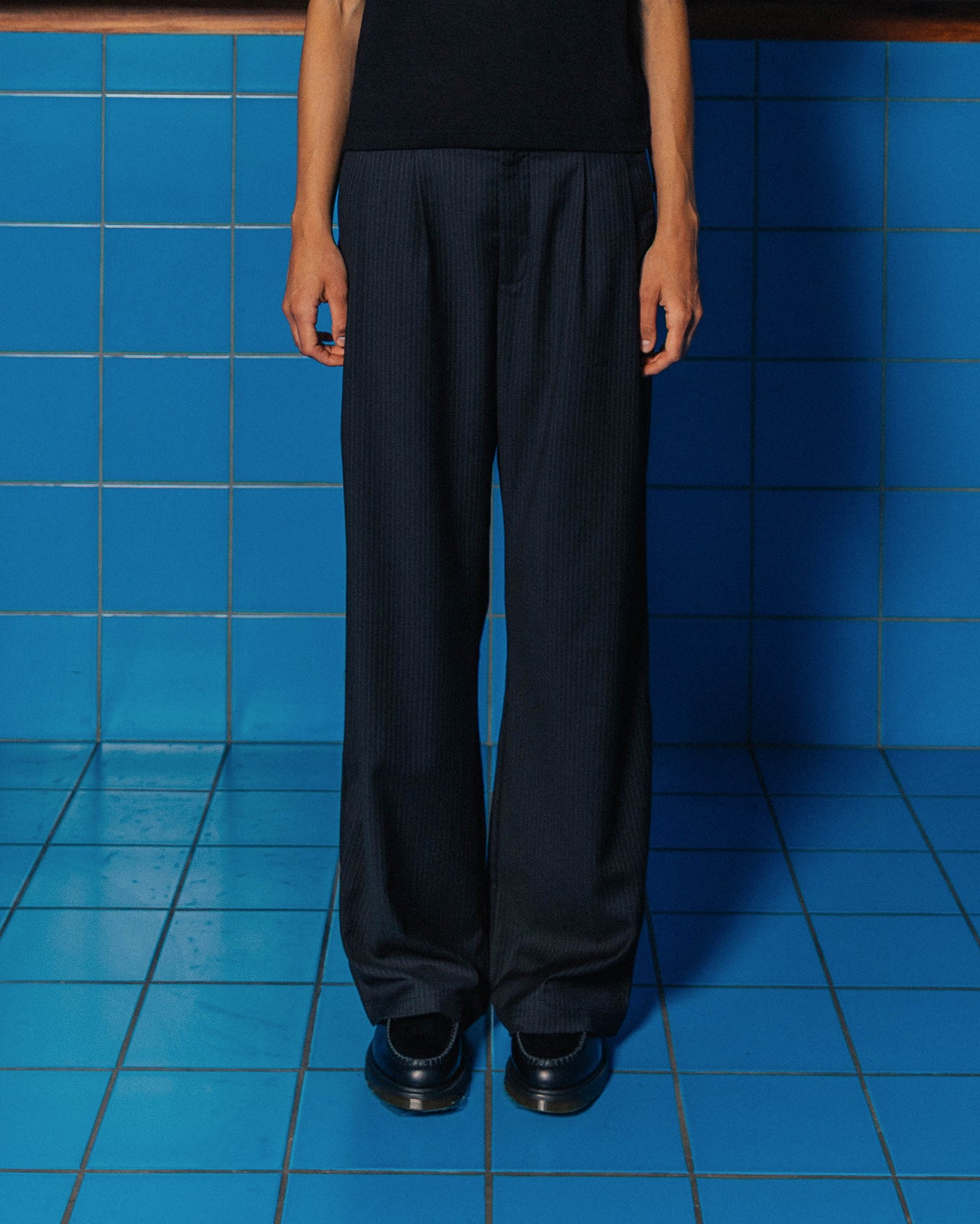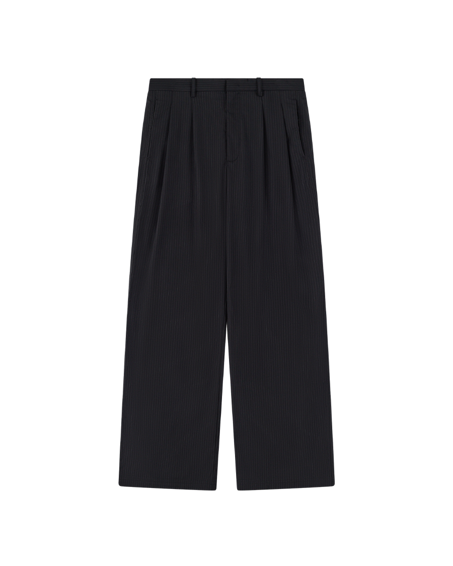Not your average dark grey suit pants. Straight-leg fit with double darts on each leg and an adjustable external waistband. Features welt pockets alongside our embroidered logo for subtle refinement. Finished with a split hem so the trousers sit naturally over the shoe.