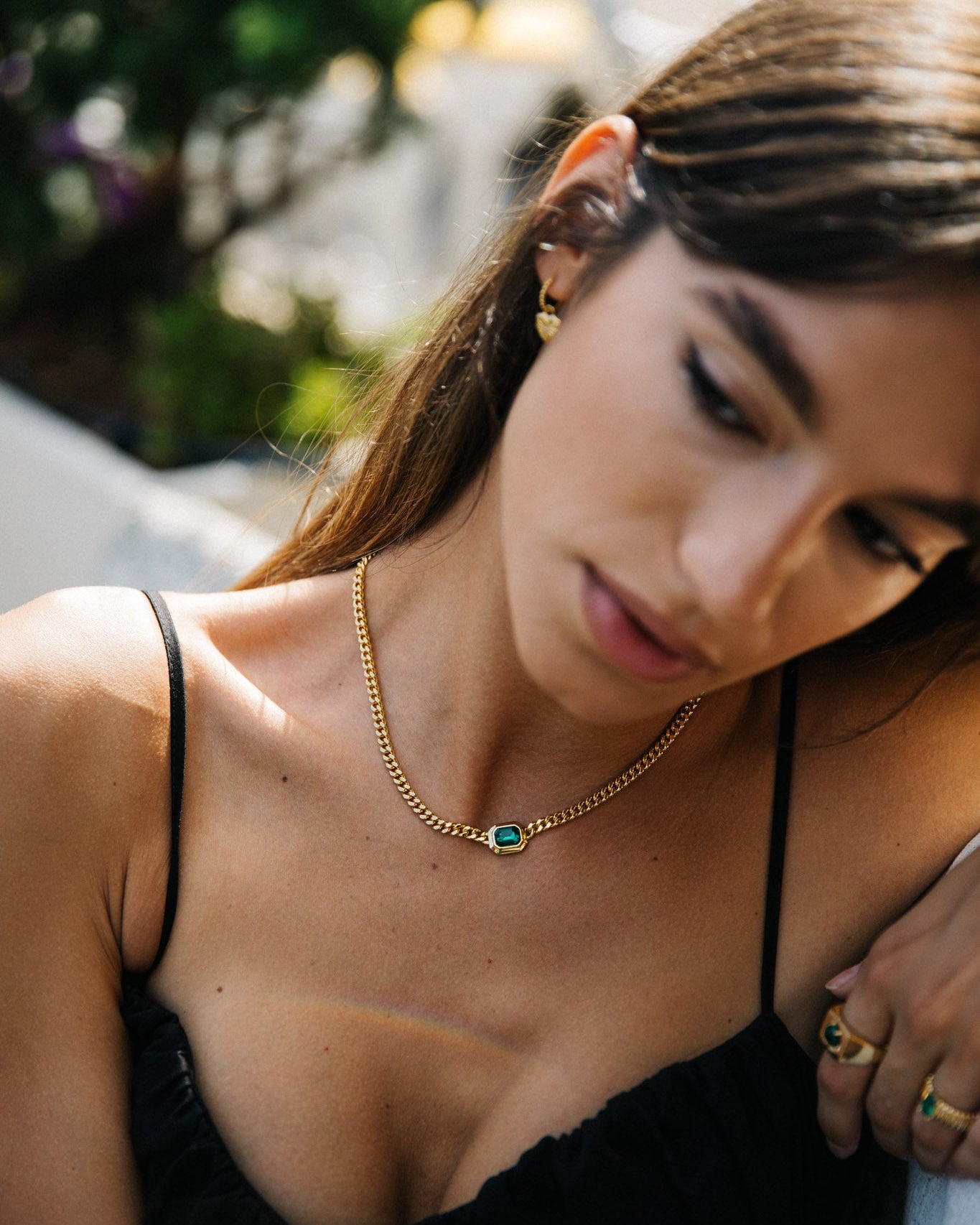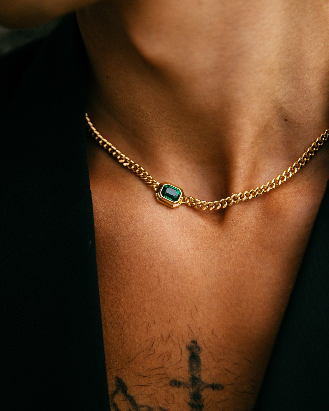 Jaden and Alexis come hand in hand. These two are made for each other. With a classic gold chain design finished with a bold emerald pendant .