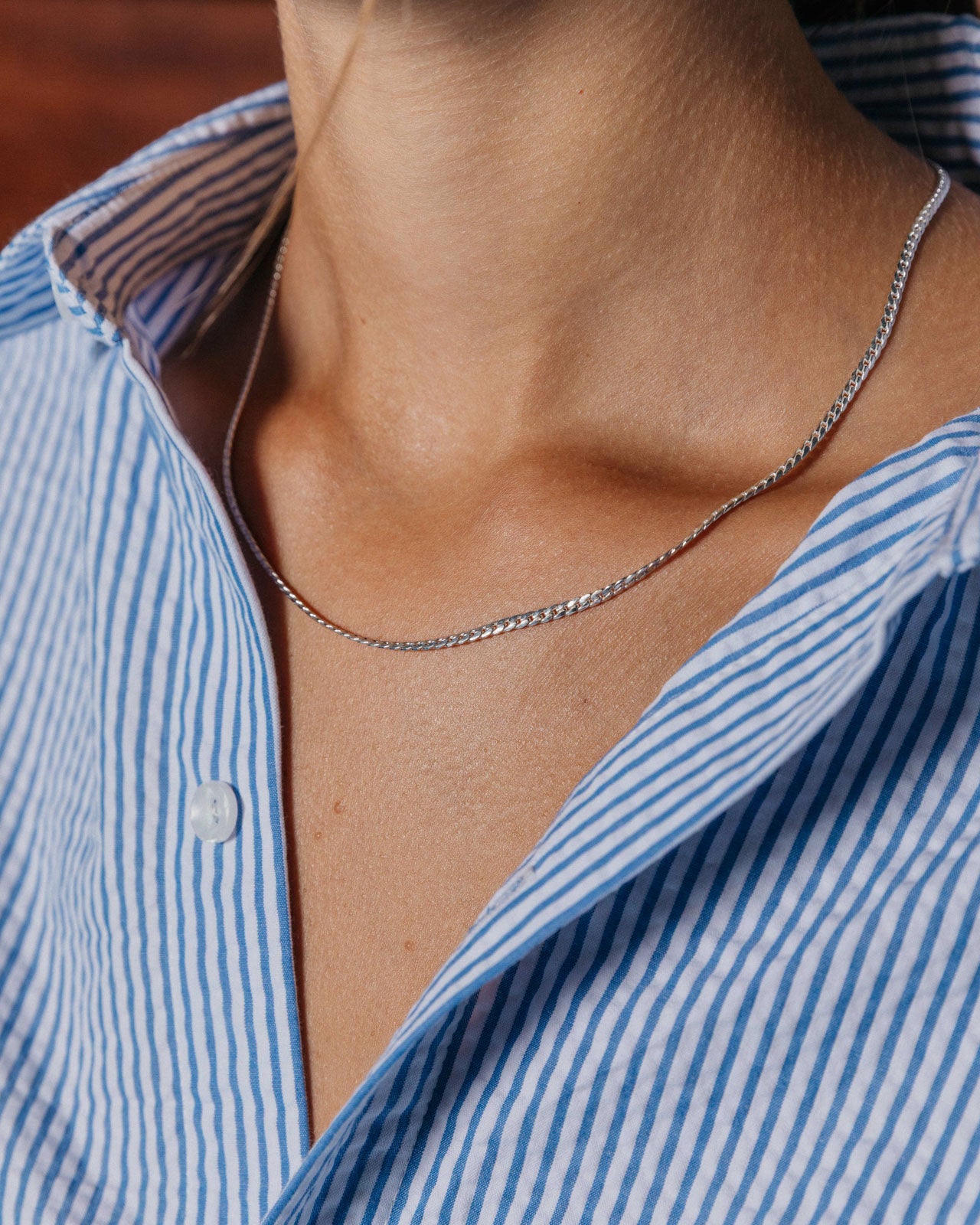 The perfect chain for everyday wear, this flat snake chain offers a contemporary twist on a classic design, designed to drape seamlessly along your natural contours. Crafted from Sterling Silver, it’s ideal for daily wear.