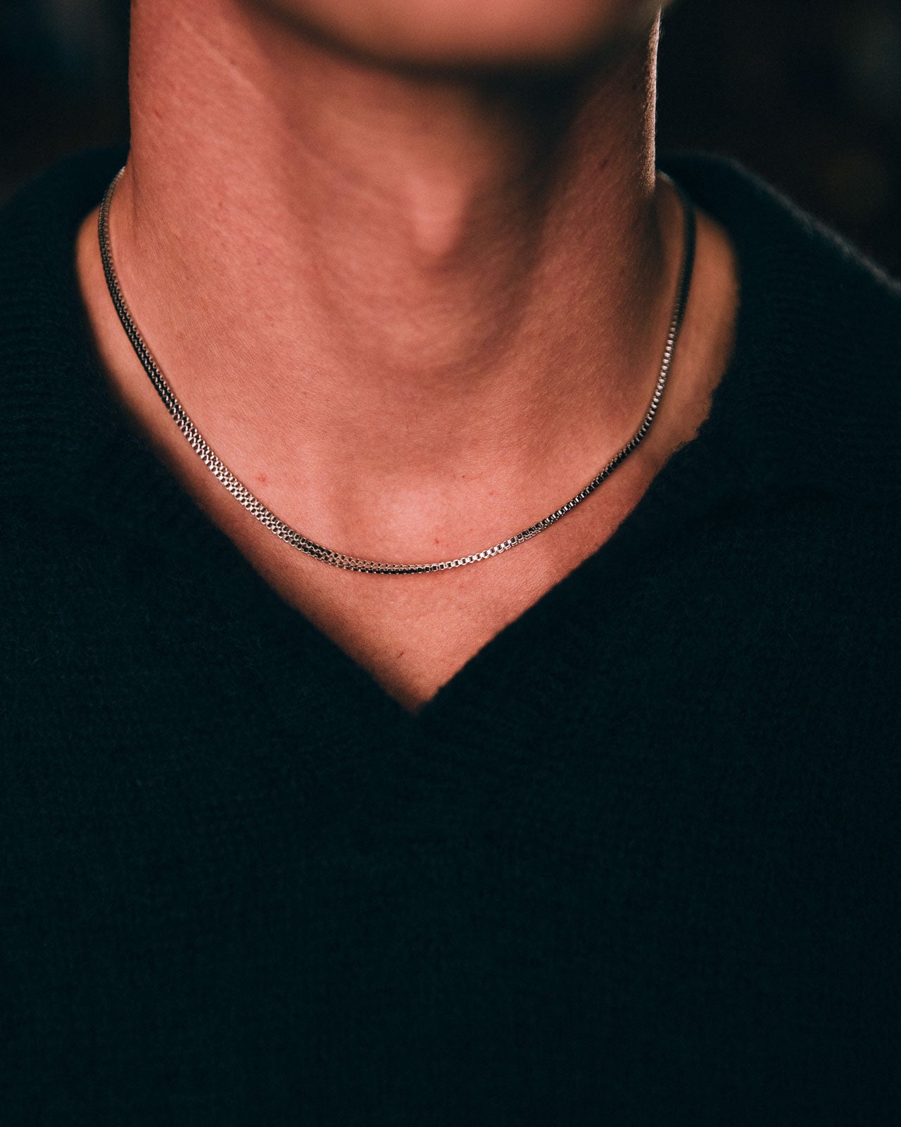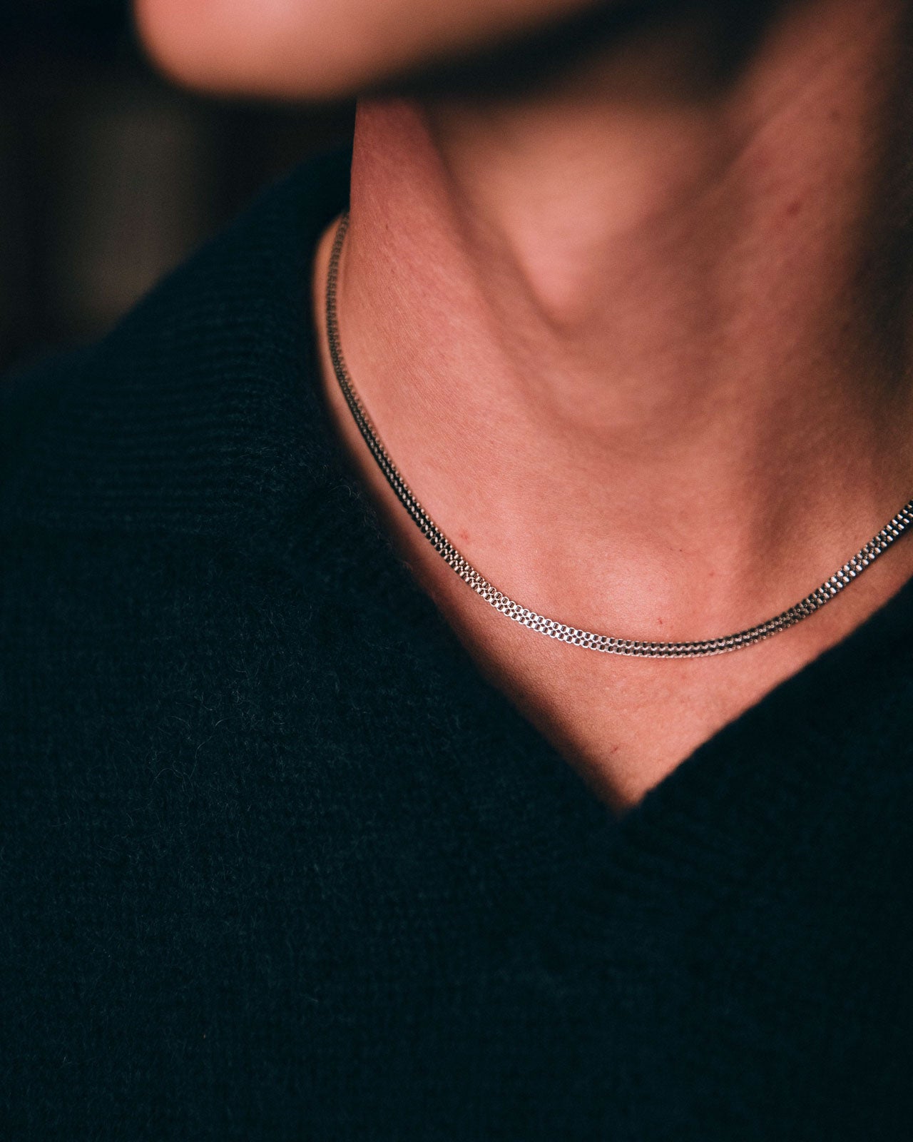 A double box chain necklace that proves gentle is powerful. For those who prefer to make more of a statement of their chain, or enjoy different depths and textures to layer with.
