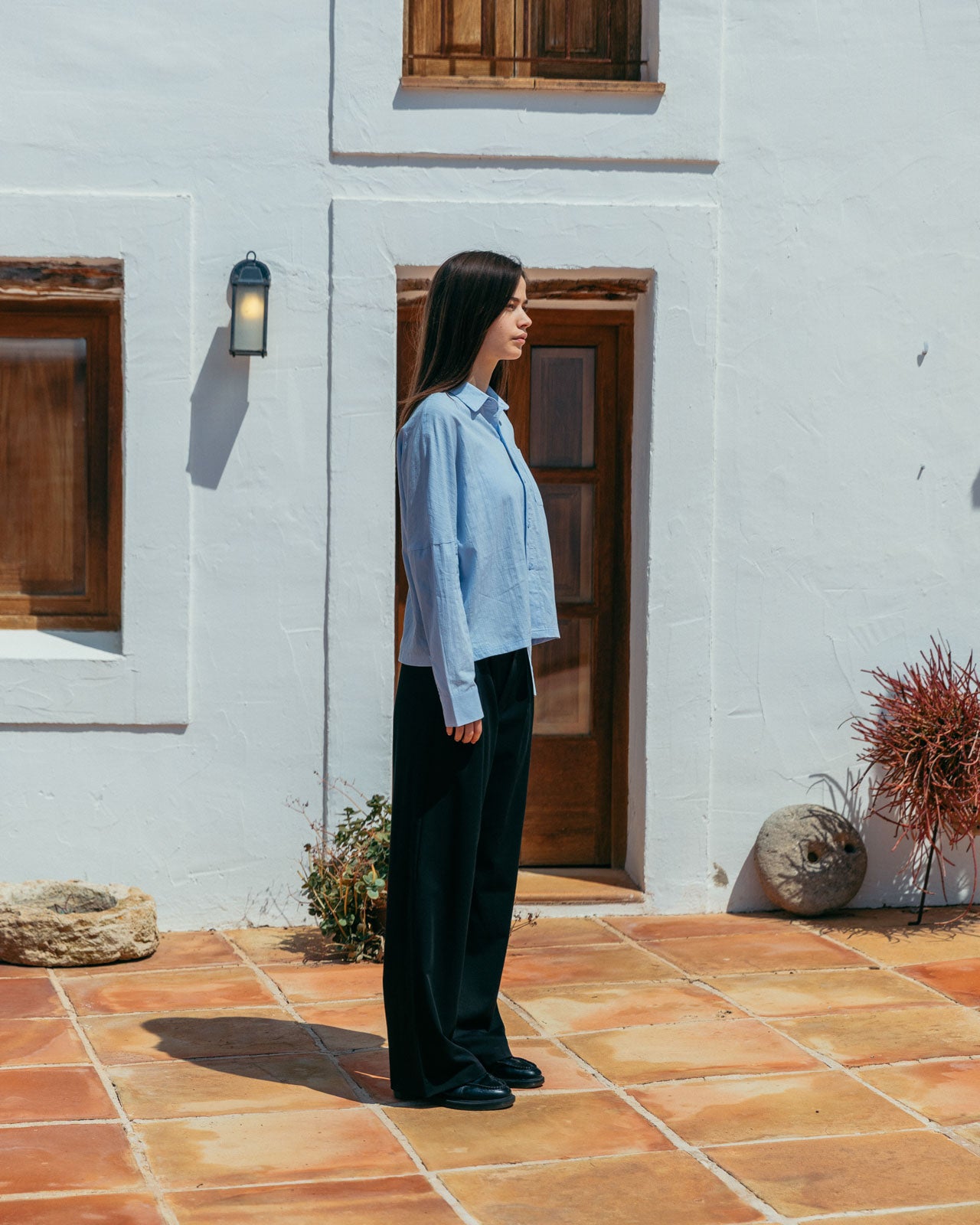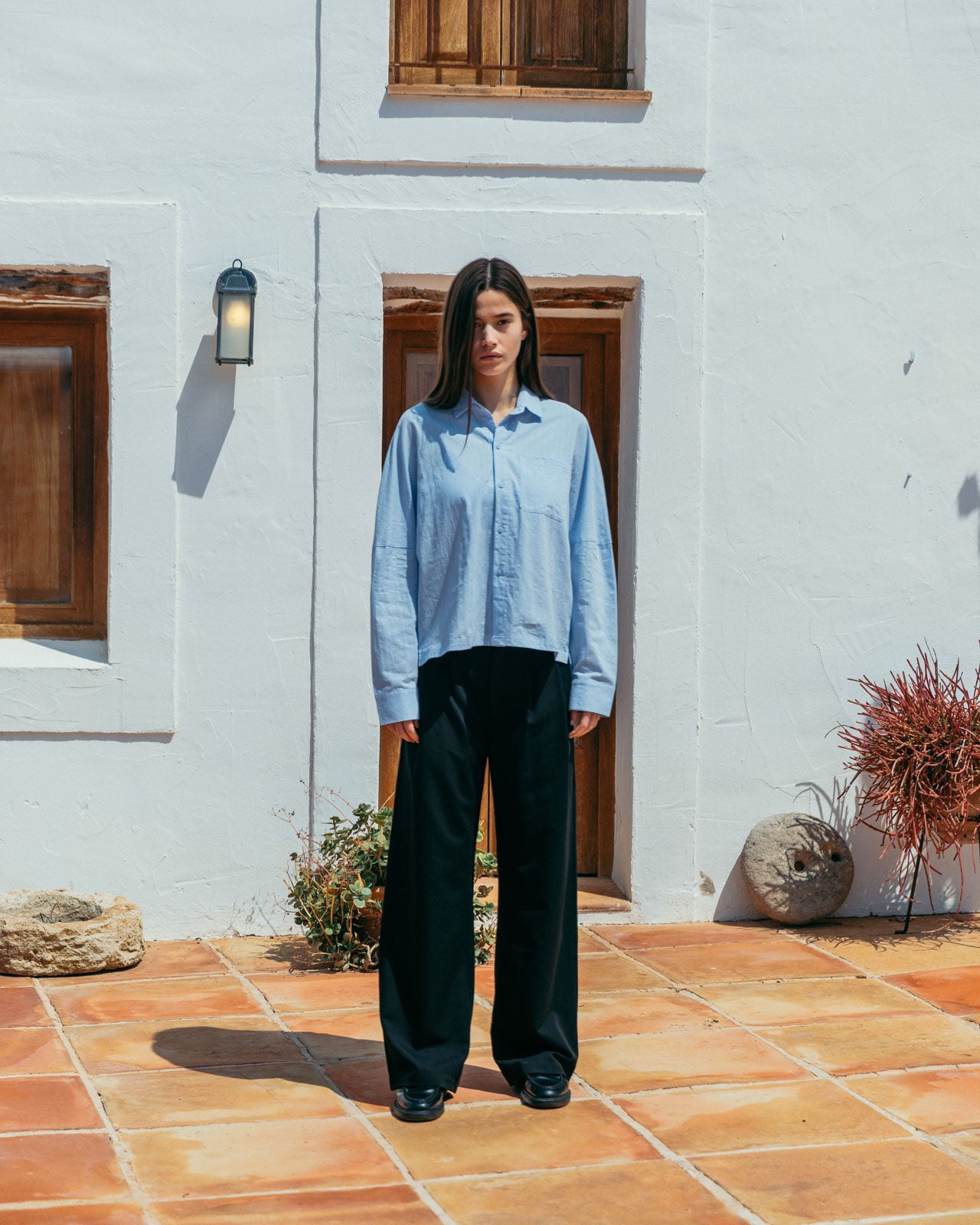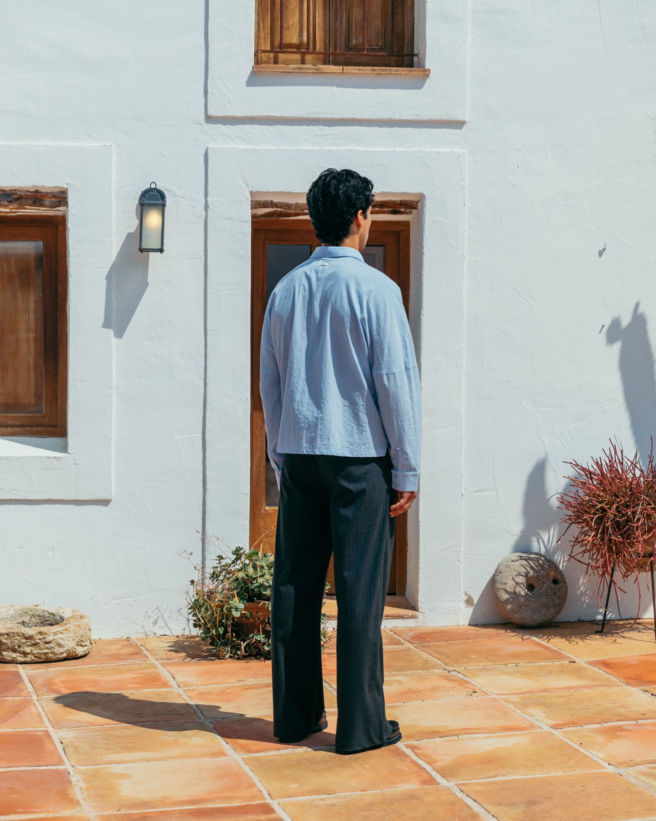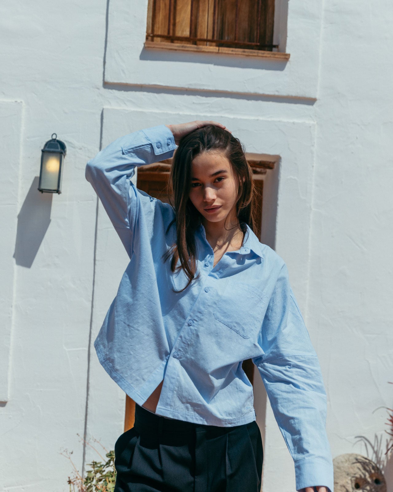 The shade of blue we want to see all summer. Its subtle striped texture and drop shoulder details give Lawrence modern classic status.