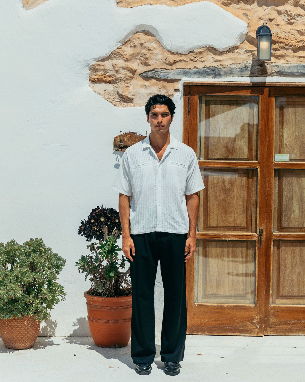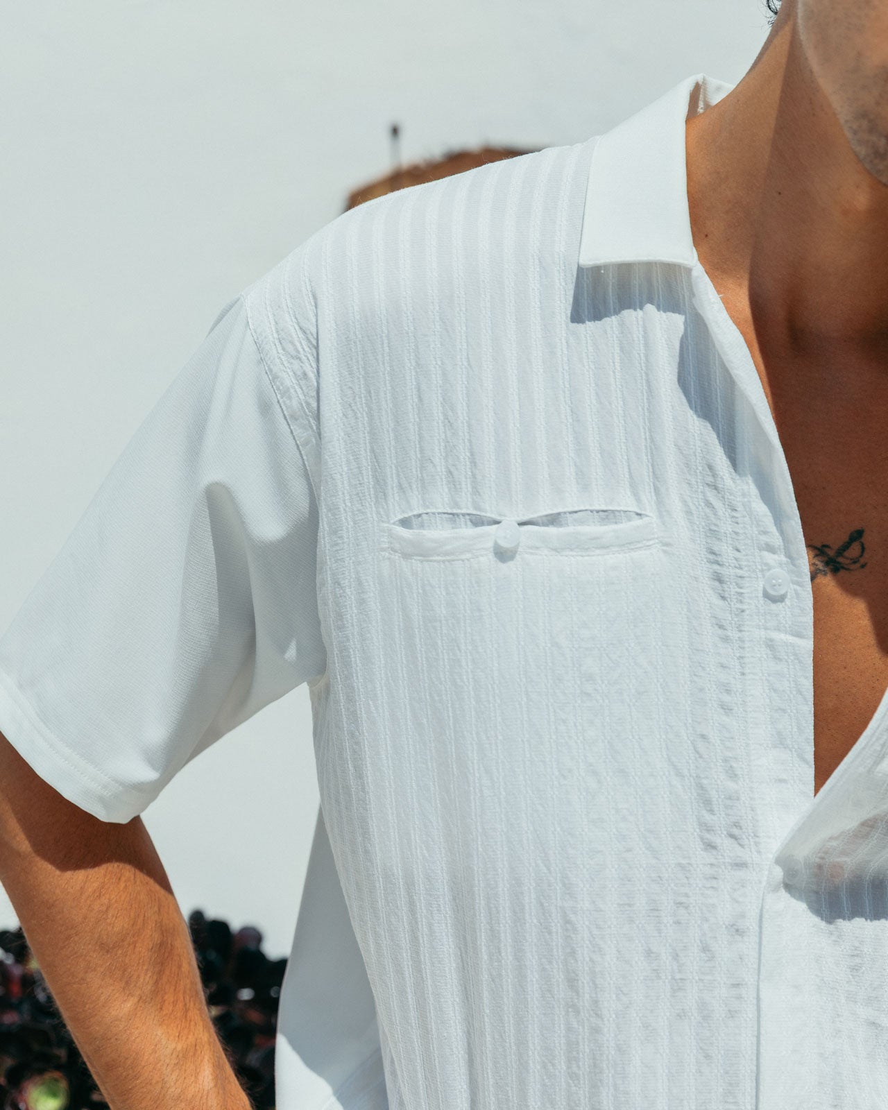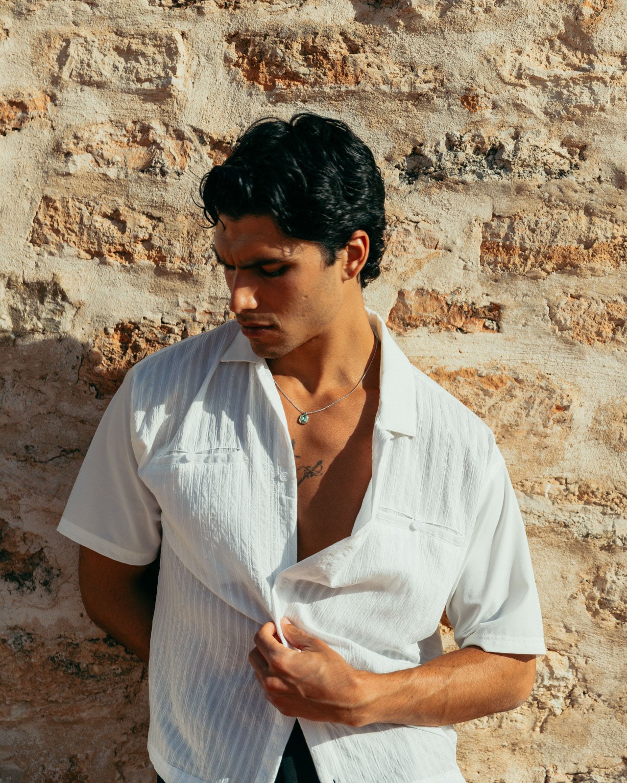 Inspired by a shirt worn by DiCaprio in the 90s that we couldn’t get out of our minds. With a gentle stripe and buttoned pocket details, you too can get the 90s Leo look.