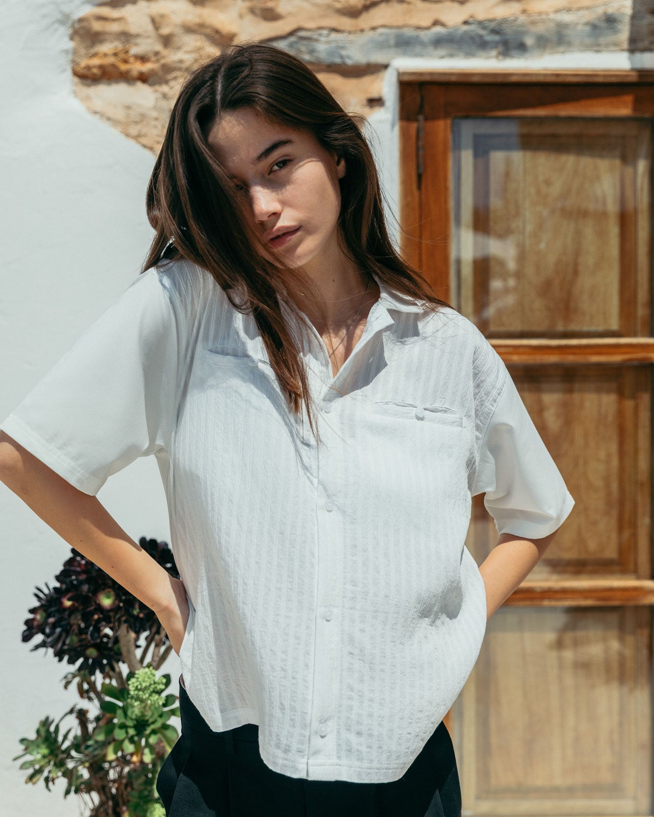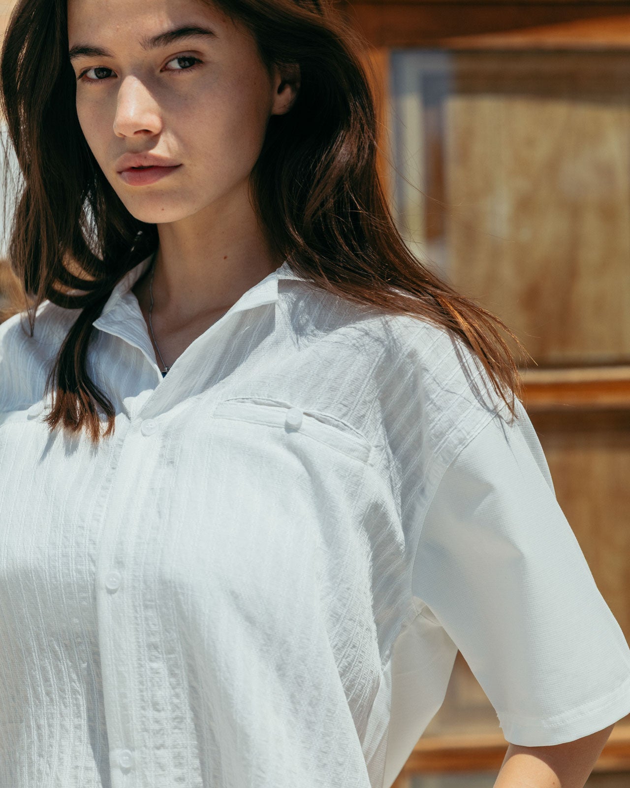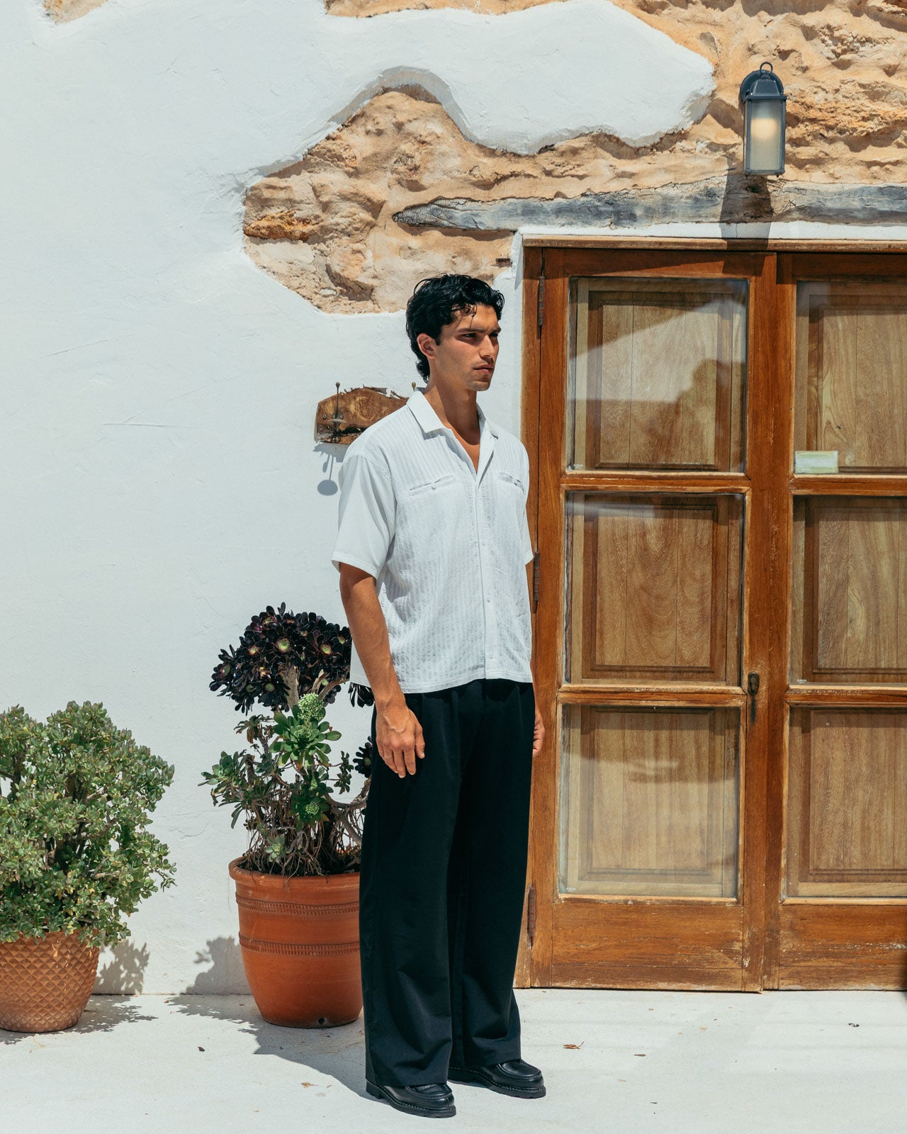 Inspired by a shirt worn by DiCaprio in the 90s that we couldn’t get out of our minds. With a gentle stripe and buttoned pocket details, you too can get the 90s Leo look.