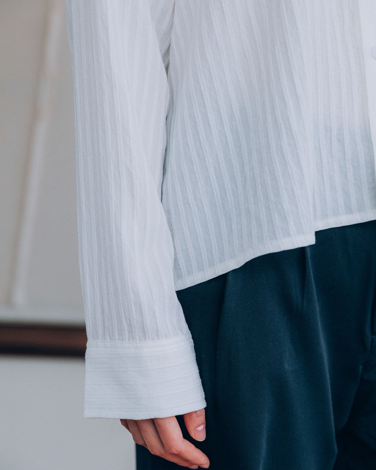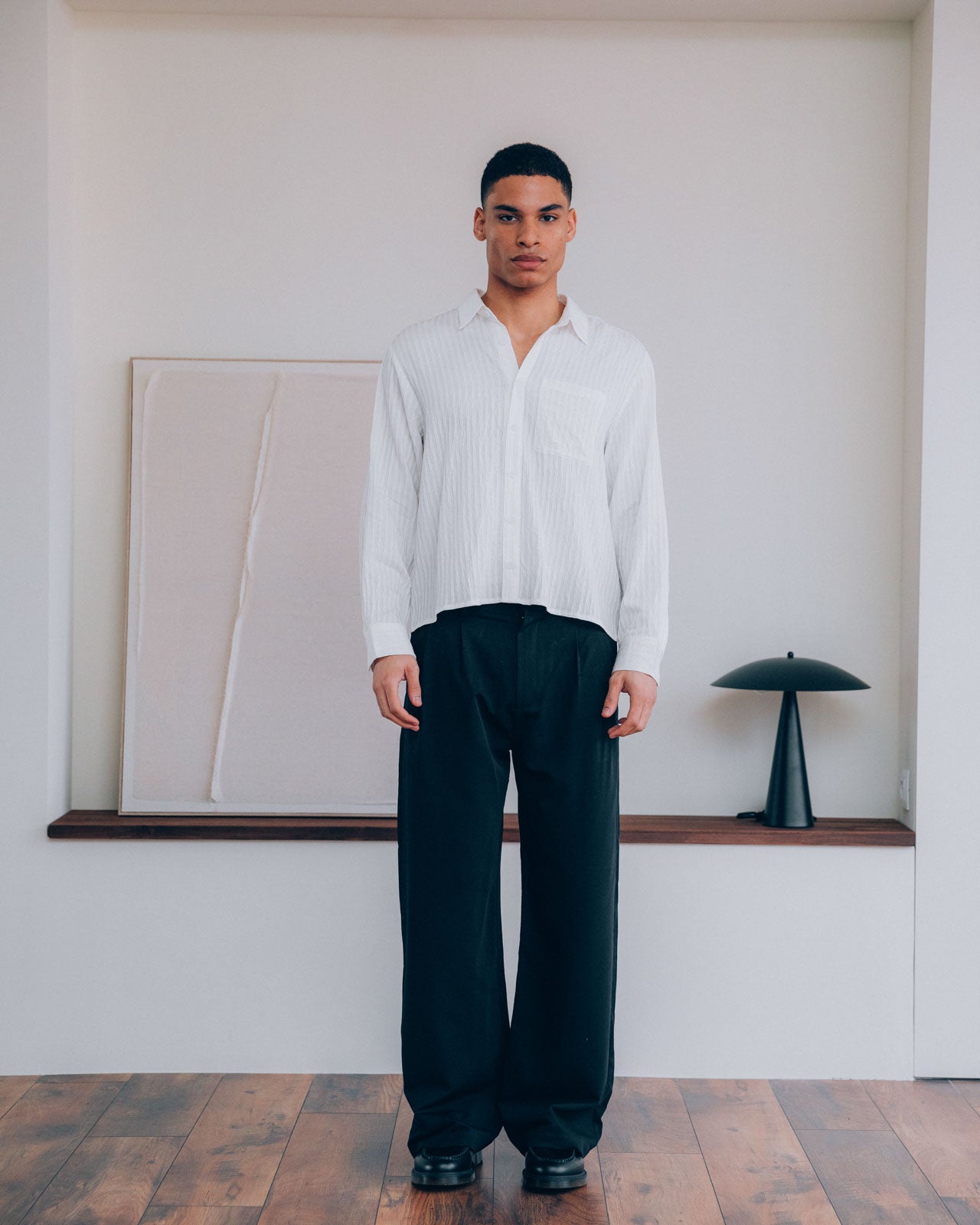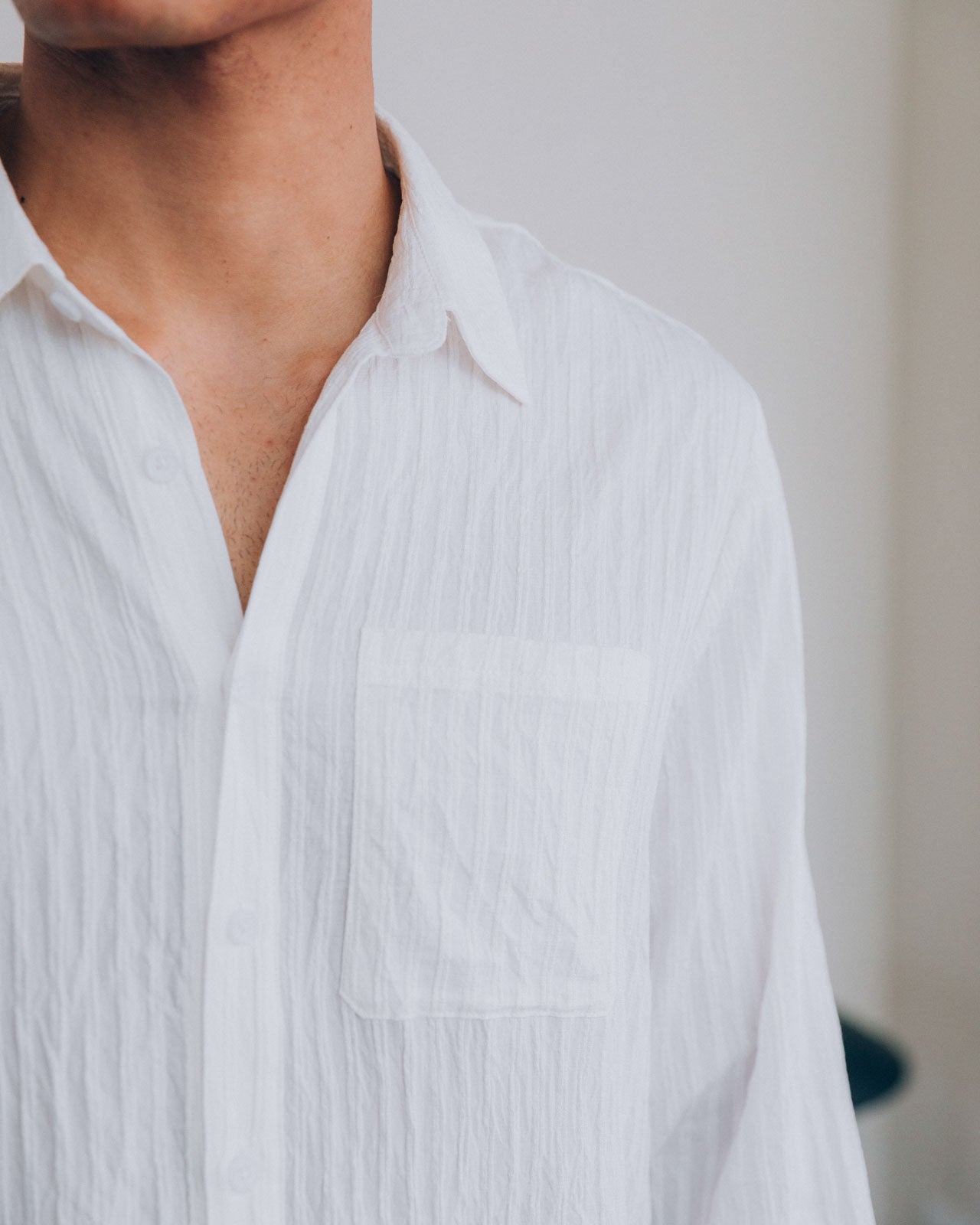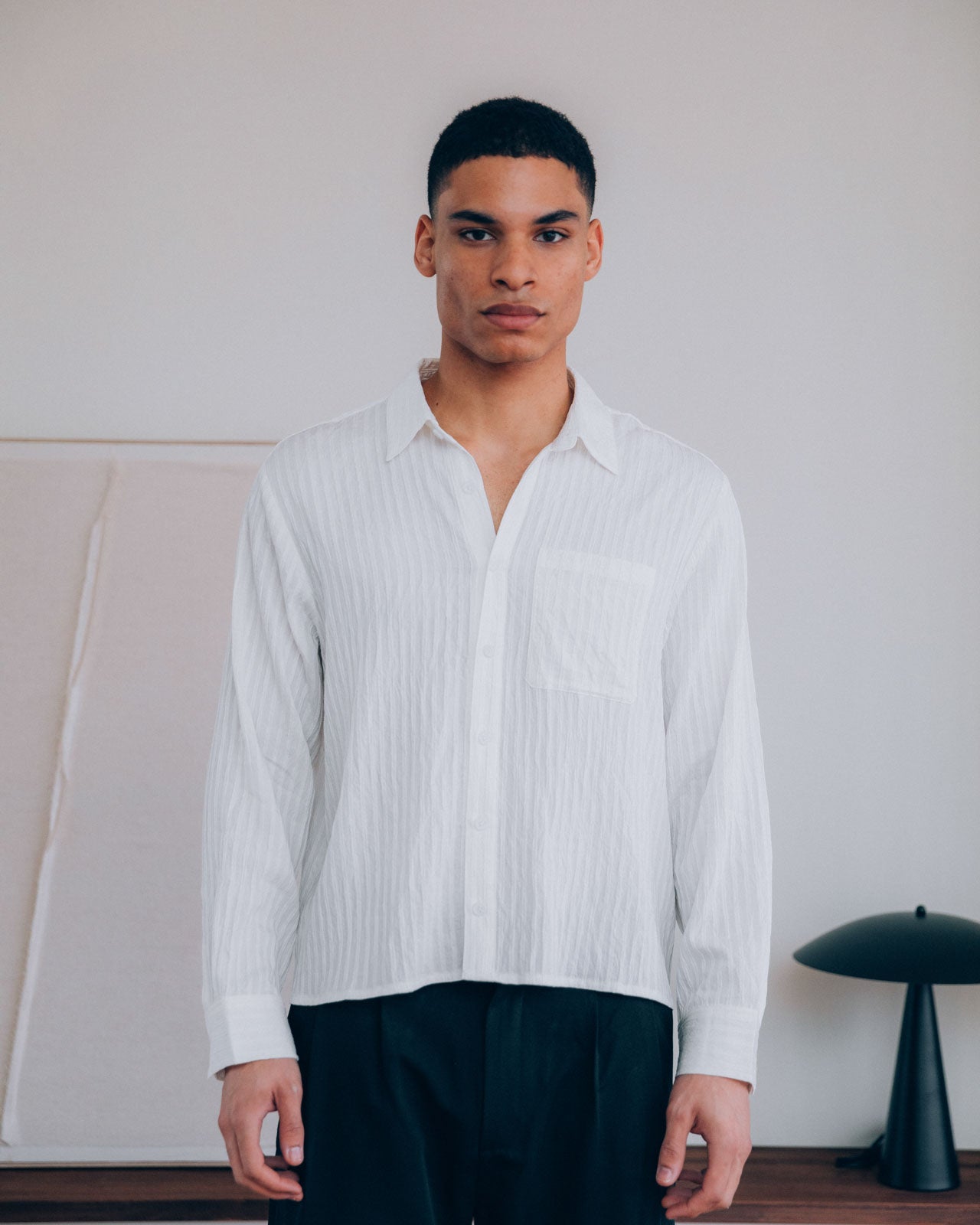 A lightweight 100% cotton shirt that drapes over your body exactly how it should. With a loose fit and piped texture, this piece is made for summer evenings.