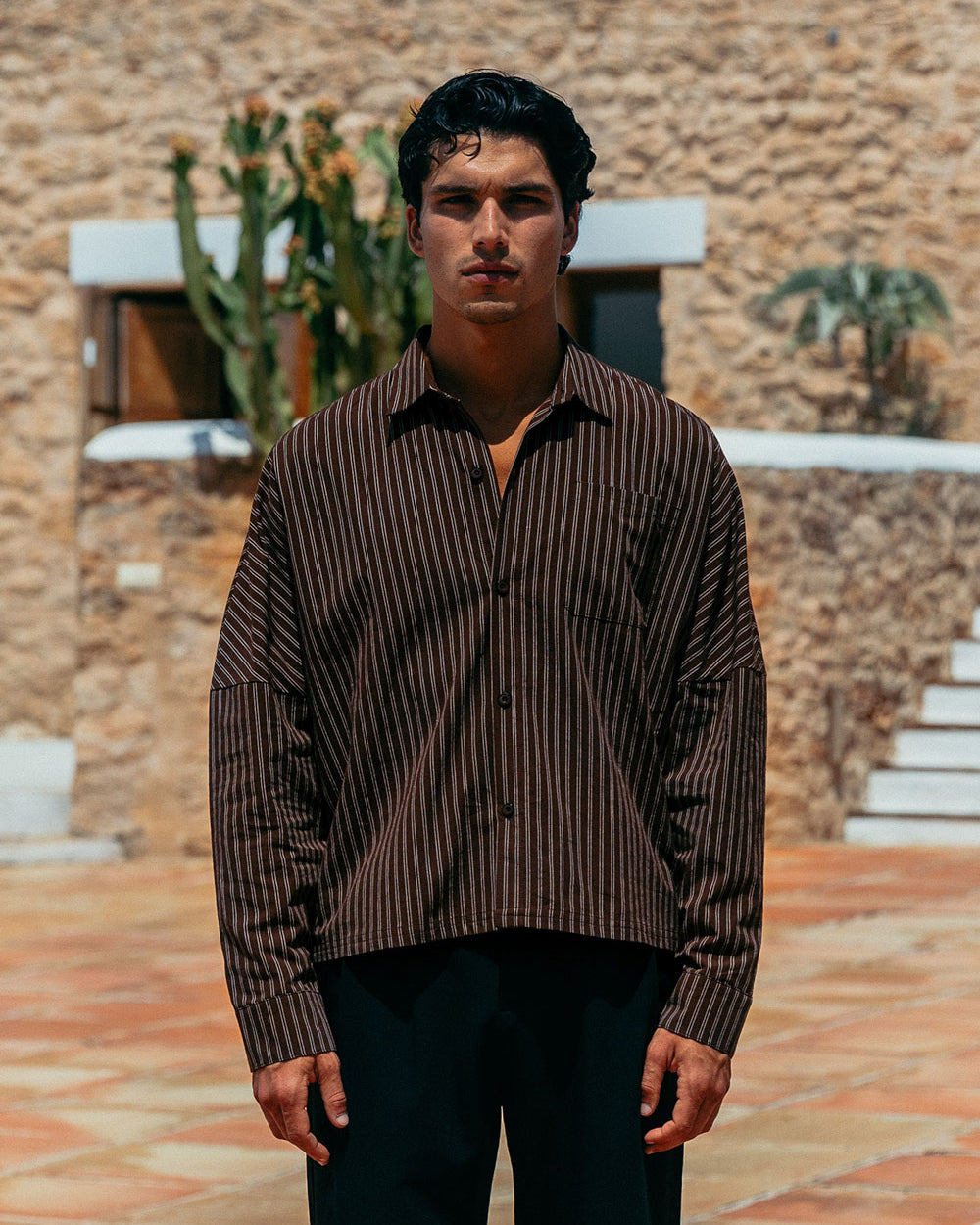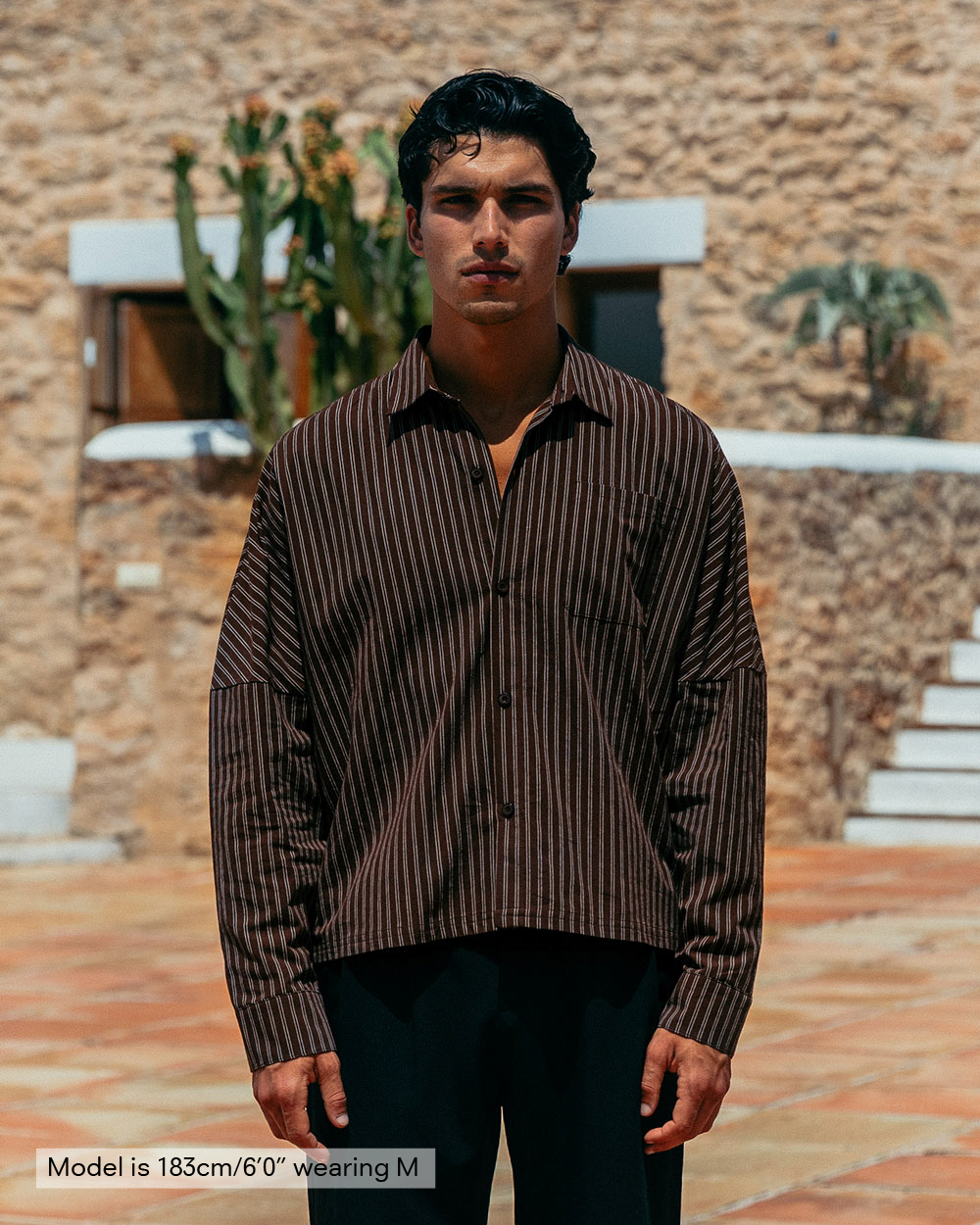 The chocolate gelato you sneak on the way home from dinner. Lorenzo enchants with richness while staying casual thanks to its off-white stripes and relaxed, boxy fit.