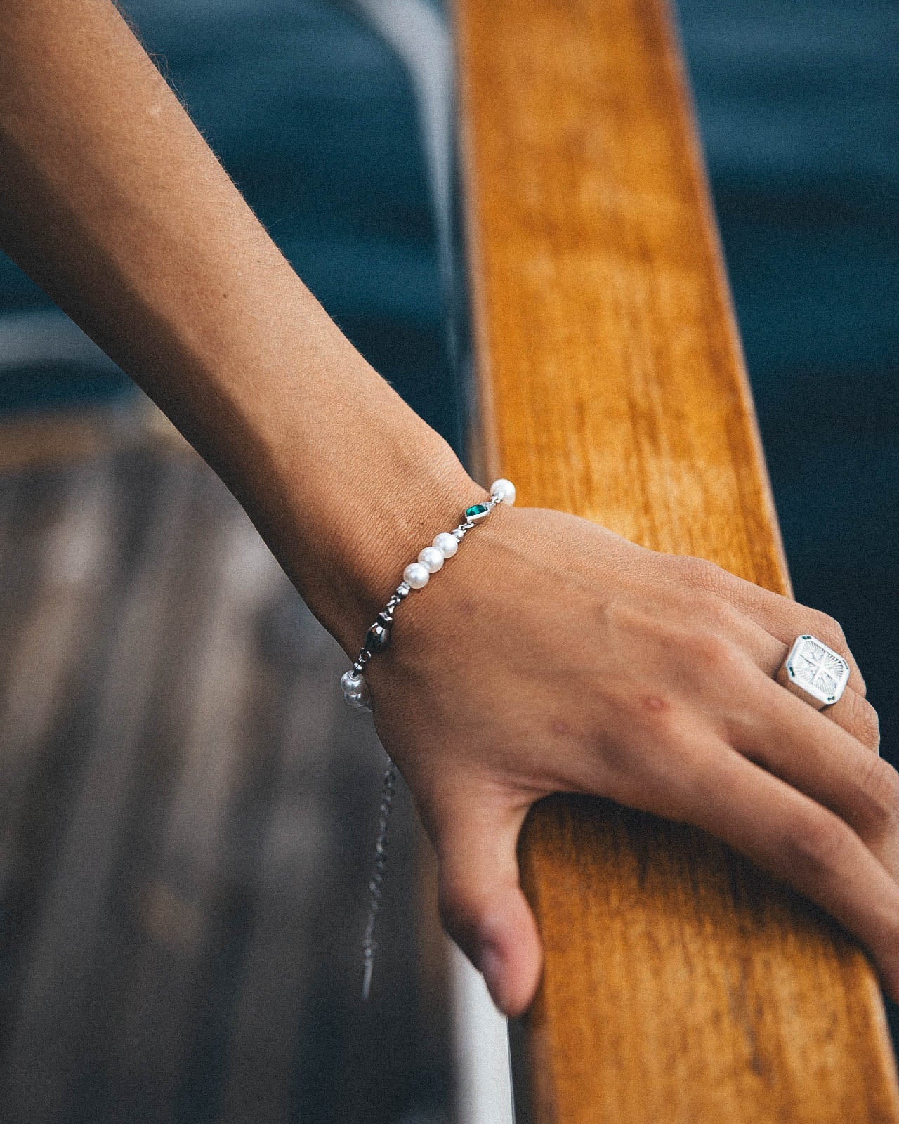 The bracelet version of our bestselling pearl necklace, Florence. It's made with stainless steel which means it's waterproof and tarnish free.