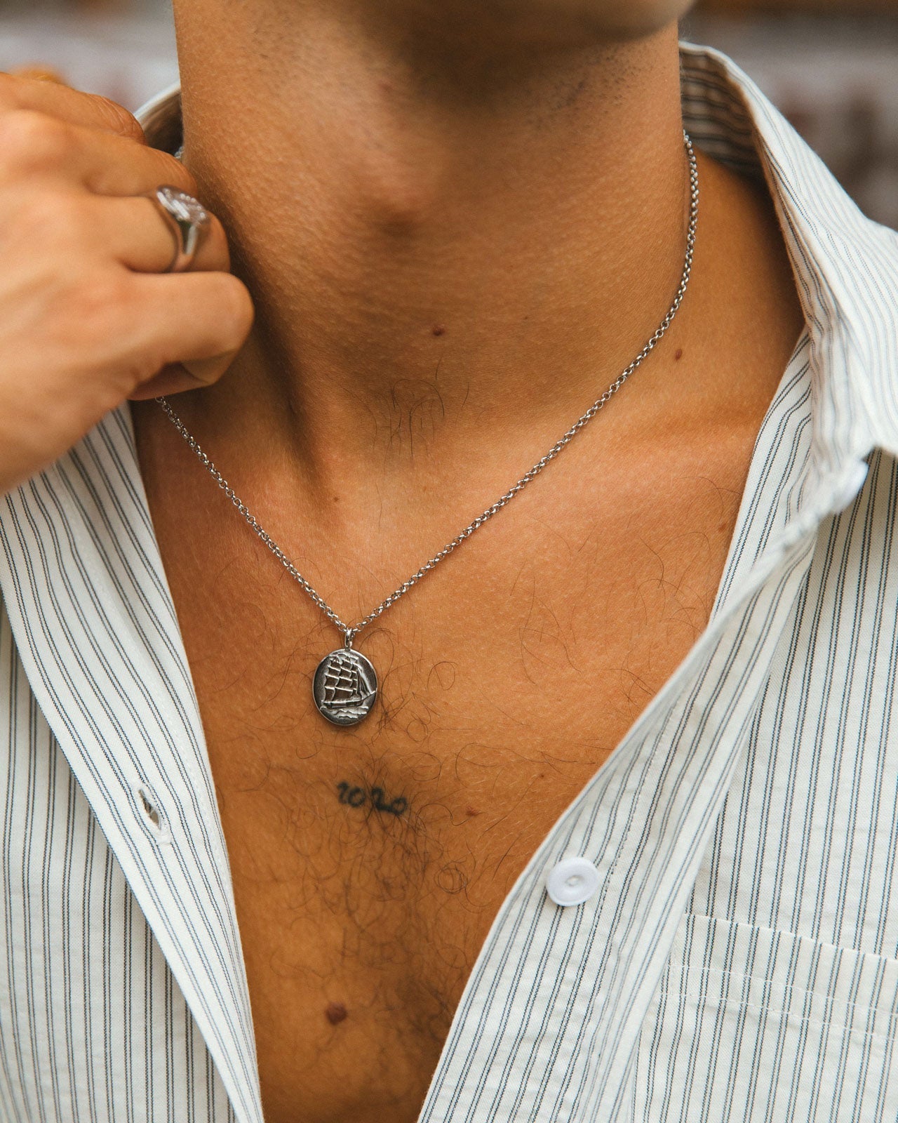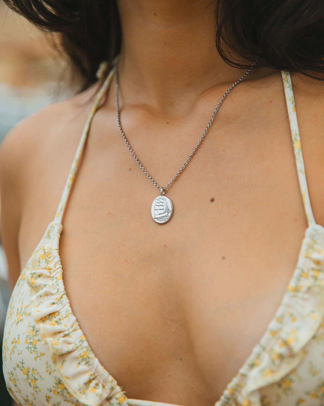 An understated beauty paying homage to the sea, this necklace features a delicate thin rope chain with a rounded boat pendant. Inspired by the Latin name "Marina" meaning "of the sea" perfect for those who cherish the beauty of the ocean. Made with stainless steel which means it's waterproof and tarnish-free, perfect for beach days.