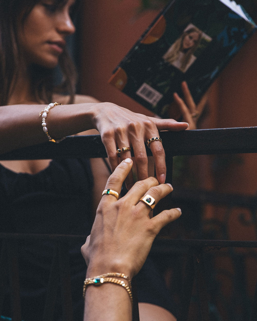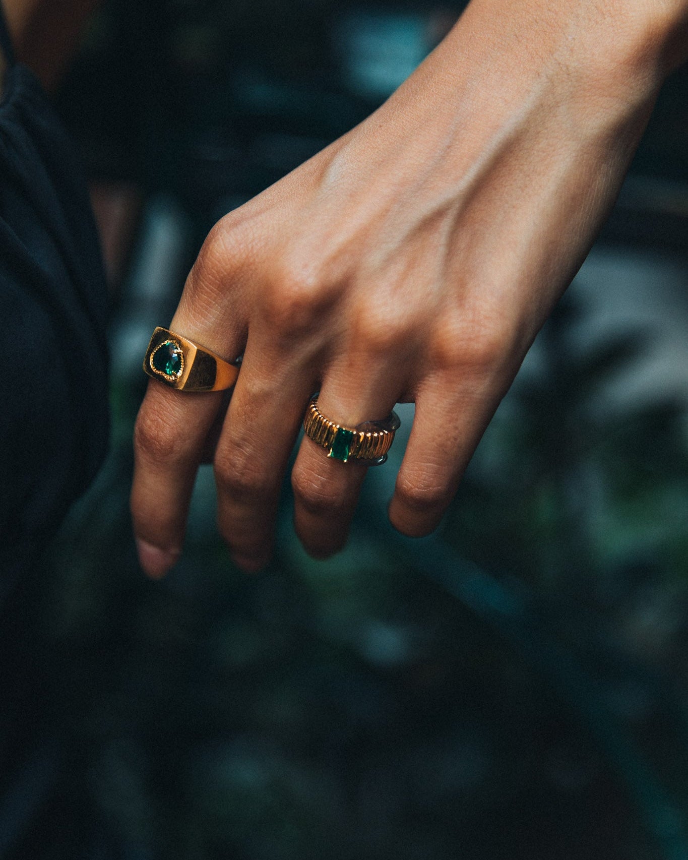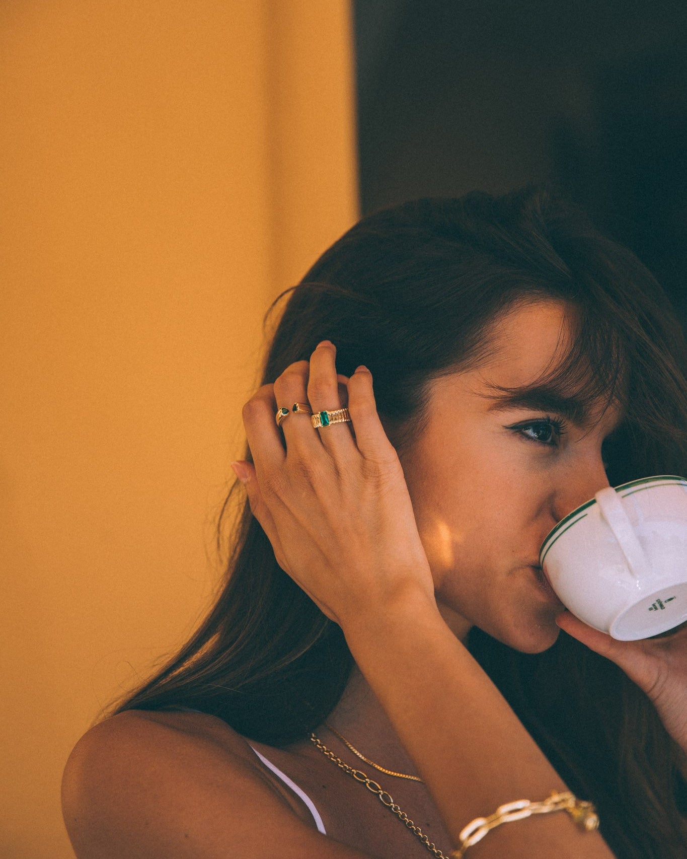 Mila is the one everyone dreams about. Created with a gold rope design and our dazzling emerald stone.