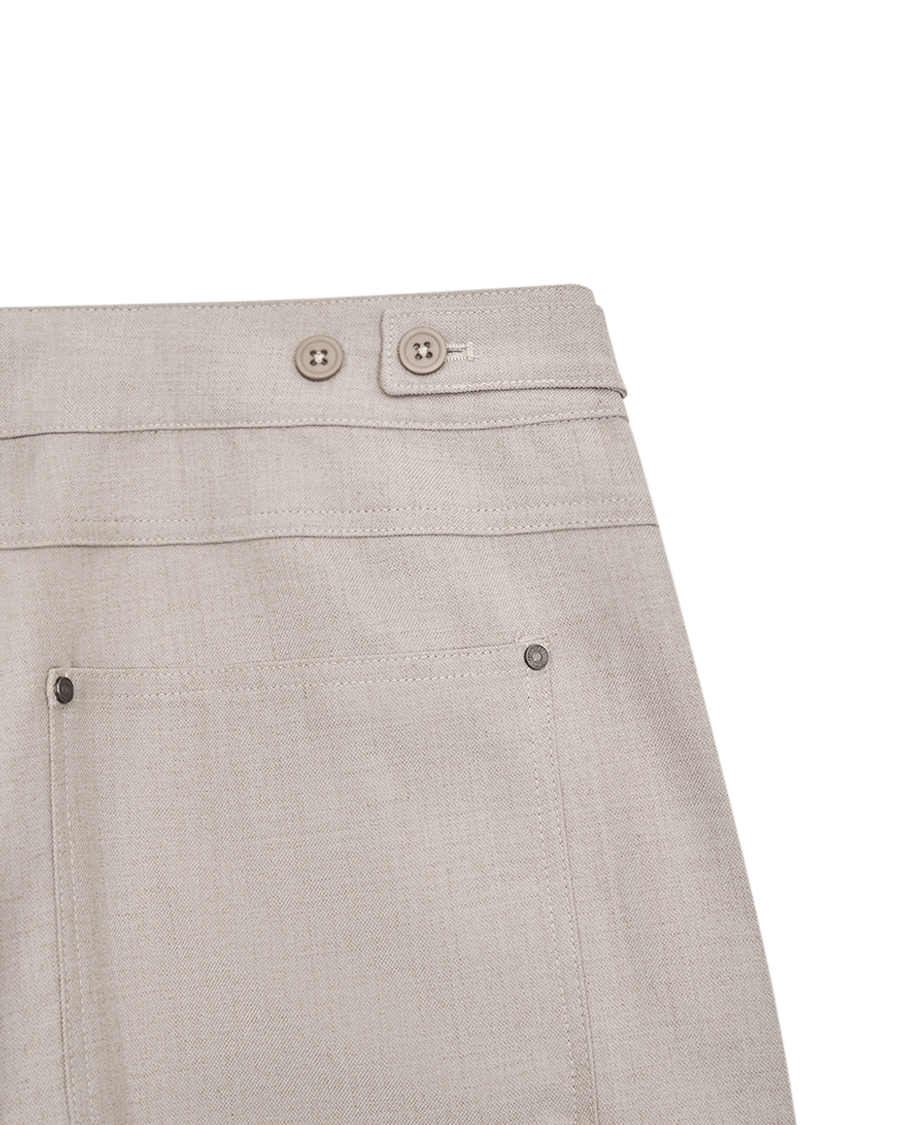 Complemented by the sand on your feet and the warmth on your skin. These are the kind of trousers you pack for vacation and can’t help but wear everyday. With adjustable waist fastenings and button details, Nicholas is a neutral that refuses to blend in.