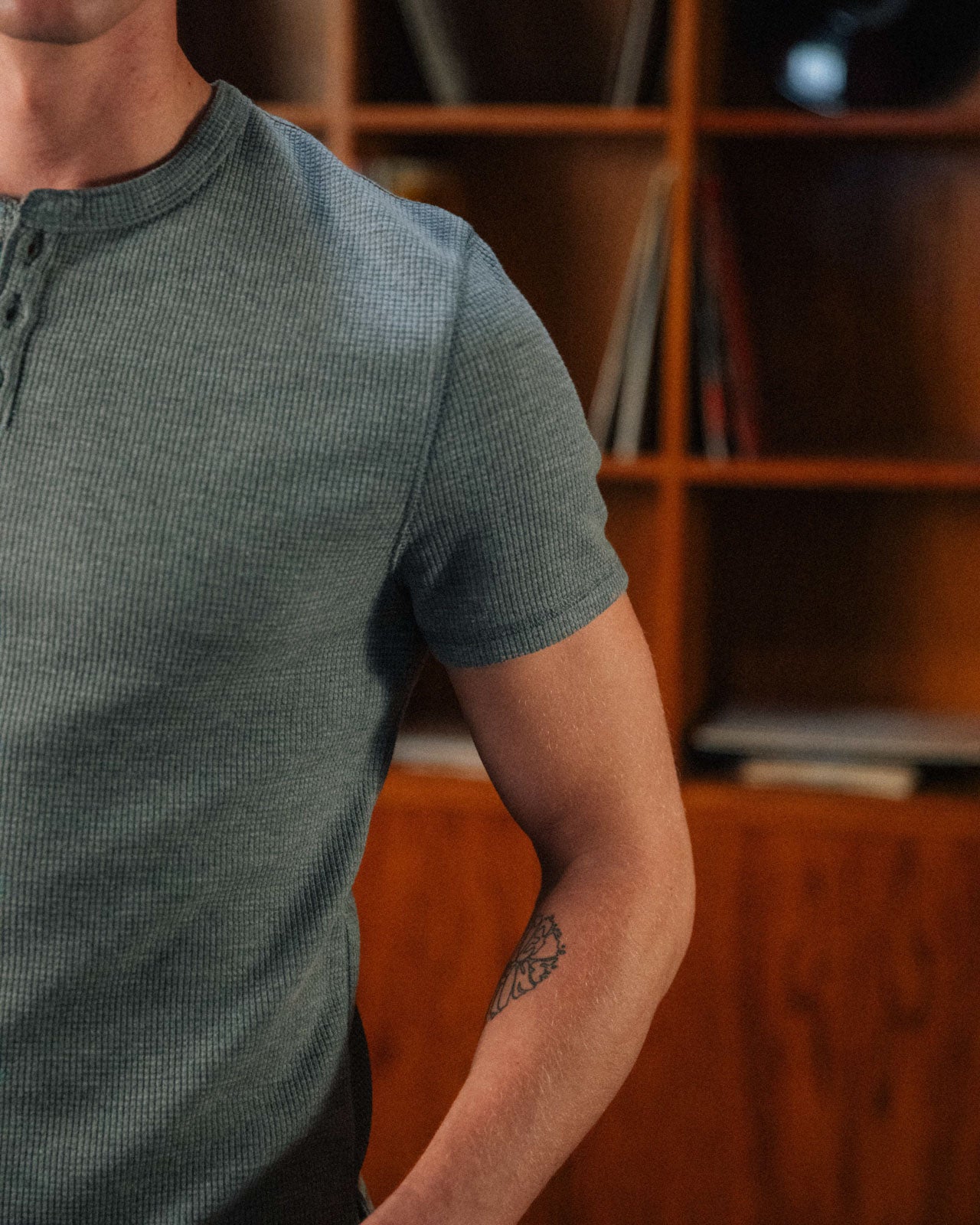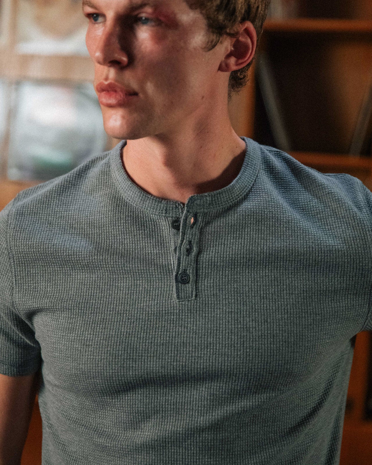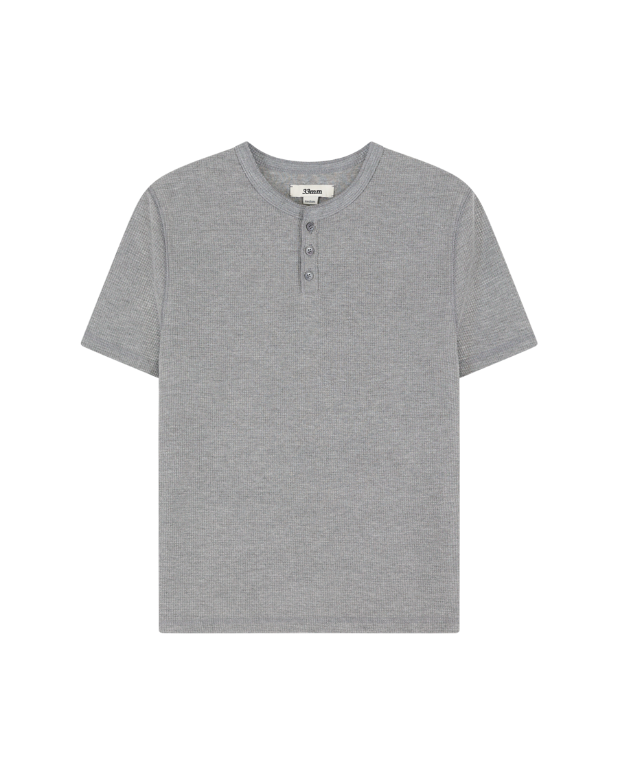 The waffle henley of a '90s actor straight off set. Nils skims the body with its slim fit and slight crop for a shrunken look. With the waffle texture continuing around the openings, it's a sleek layering piece beyond your average basic.