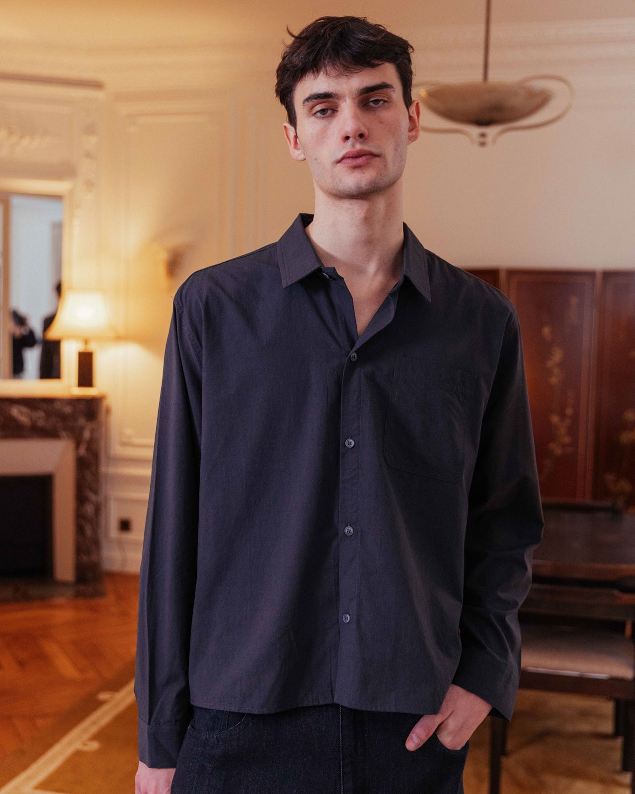 A gentle draping of fabric, this lightweight button up welcomes in a tender breeze on balmy days. Or throw it over an Andersen tank for an effortless layered look.