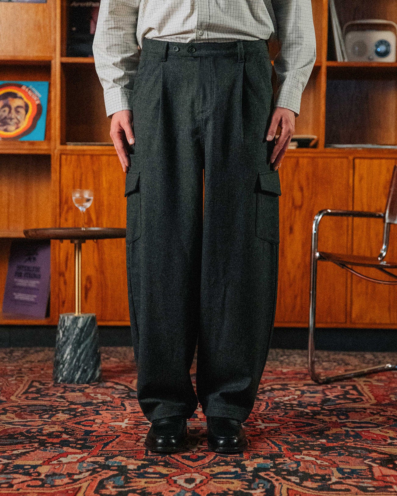 Cargos meet tailoring. In a comfortable wool blend and relaxed barrel leg, Omar brings comfort, whilst leg pockets reignite the utility feeling.