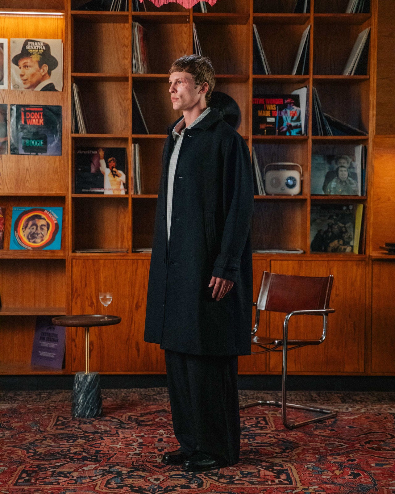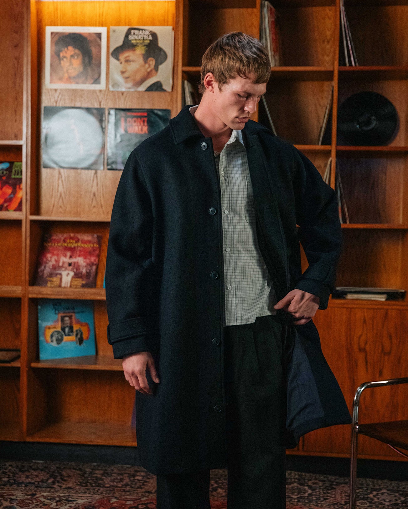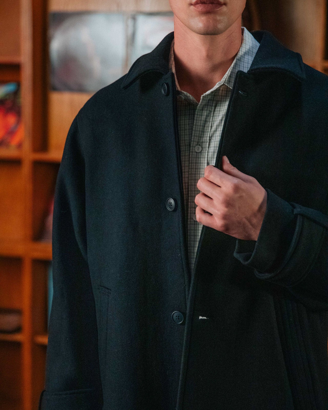 A single-breasted overcoat drenched in elegance. Sitting around knee length, it features cuff straps, diagonal welt pockets and locker loop detail on the reverse. Crafted for longevity and warmth.