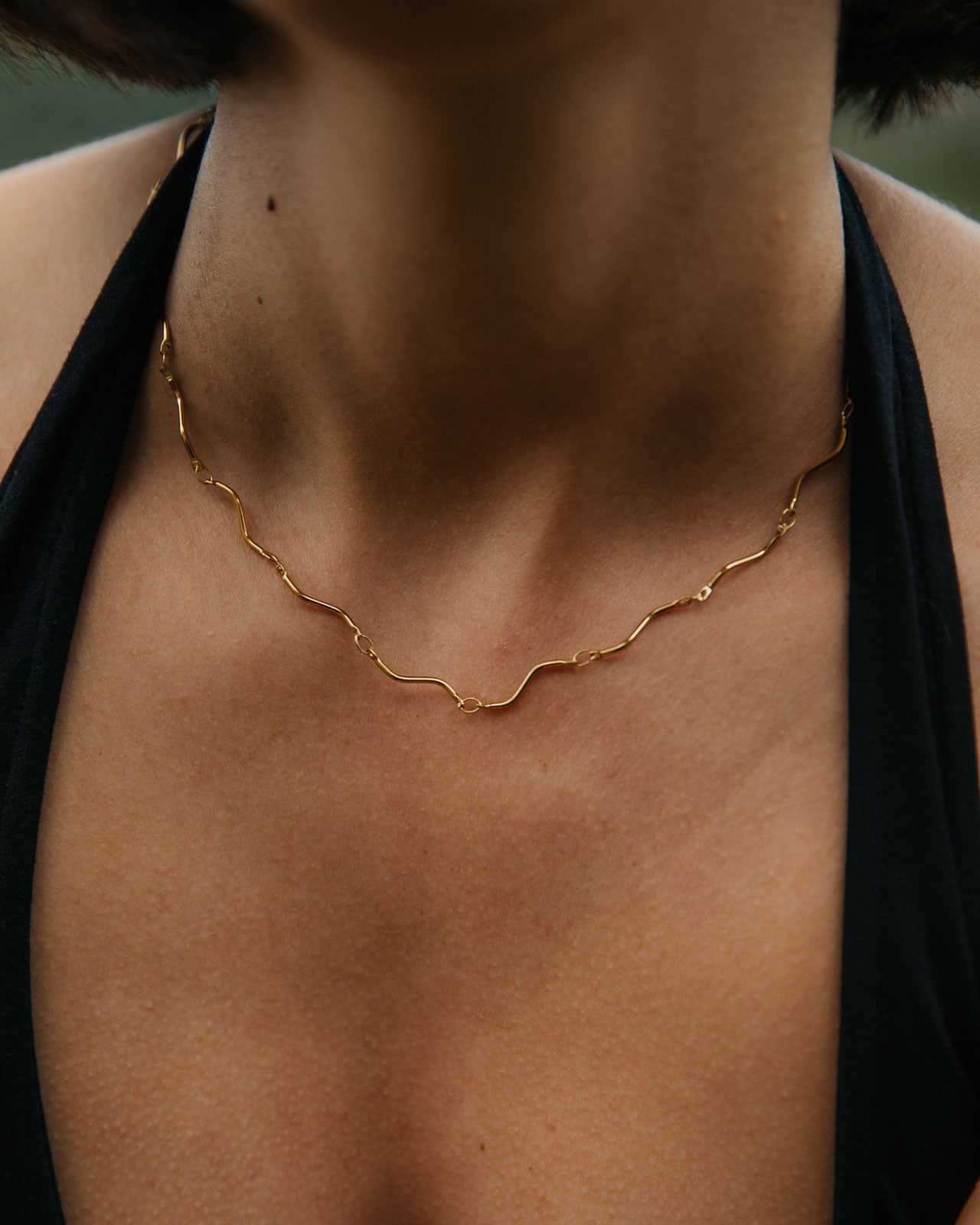 A tide of elegance around the neck, Roçio is a delicate piece with subtle intrigue.