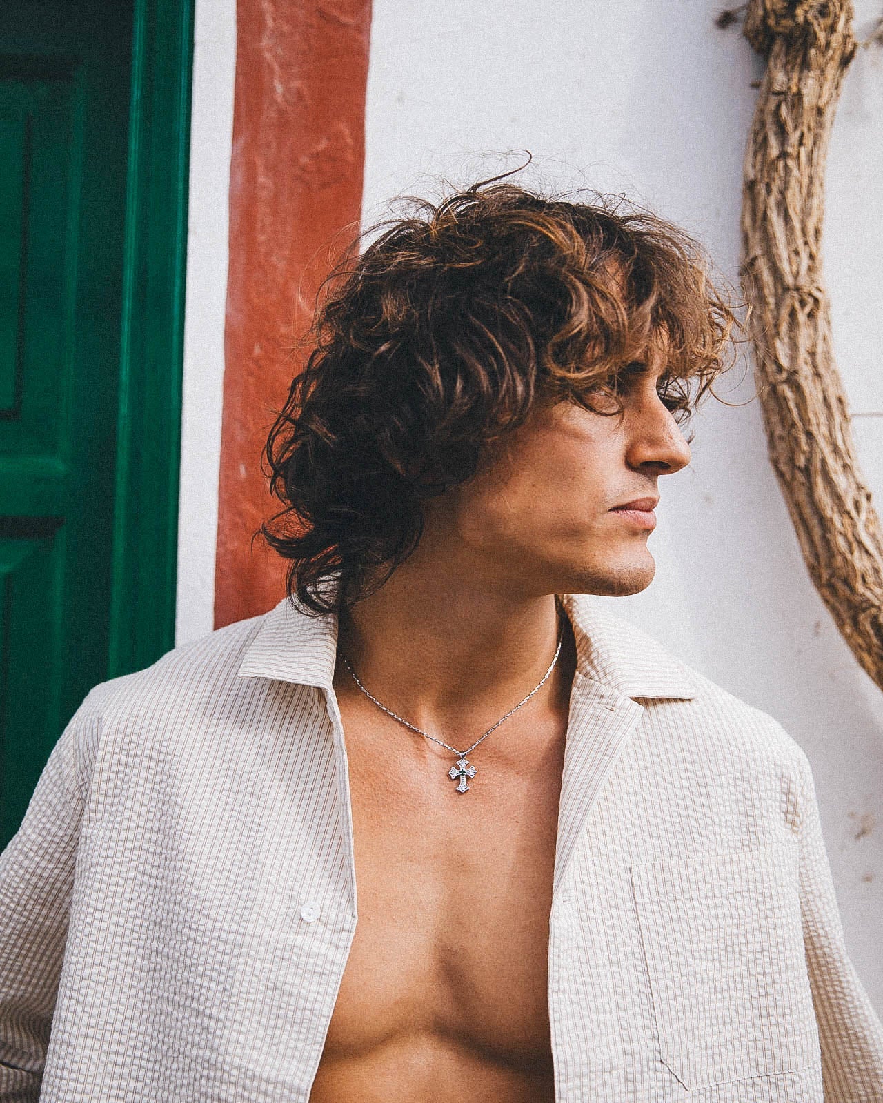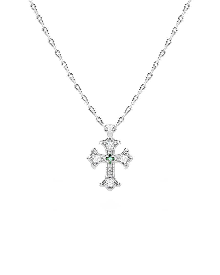 Inspired by the decadent vintage crosses you see whilst browsing European flea markets. Sicily features a thin link chain with emerald and crystal cubic zirconia gemstones.