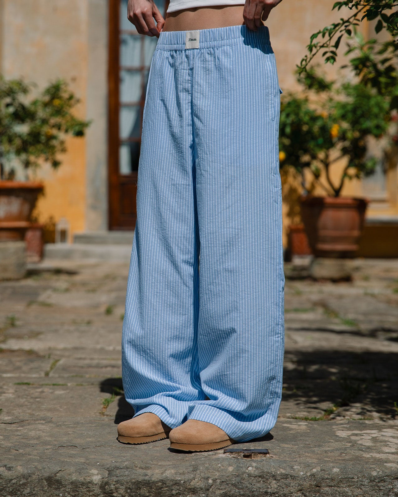 For carefree days that call for comfort, meet Tobias: a straight-leg trouser in delicate cotton pinstripe, with internal drawstrings for the perfect fit and a boxer-style woven brand label on the waistband.