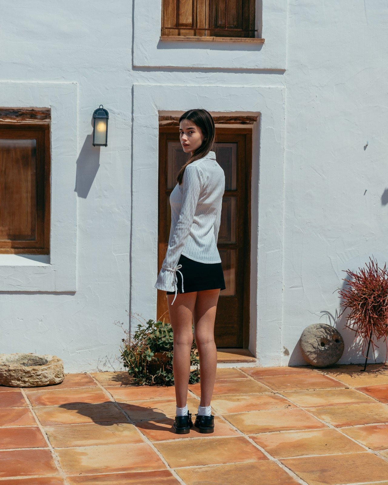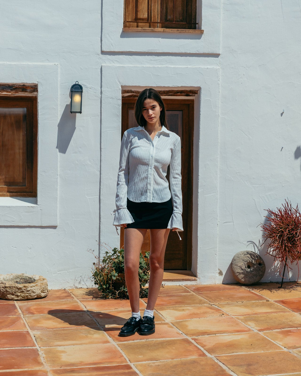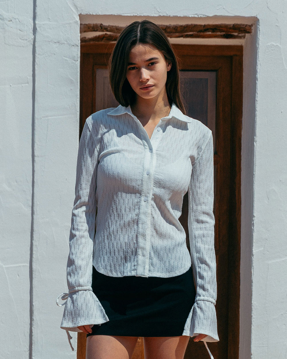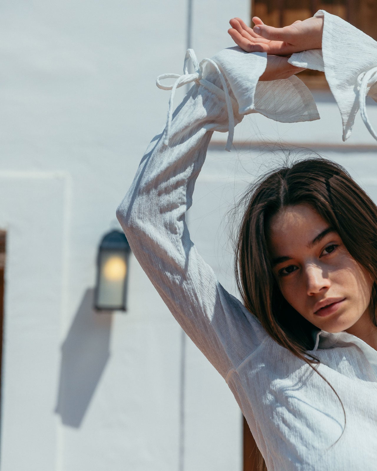 Valentina is enviously graceful. With bell sleeve details and a woven texture. Float around with the same energy as Jane Birkin in her iconic crochet dress.
