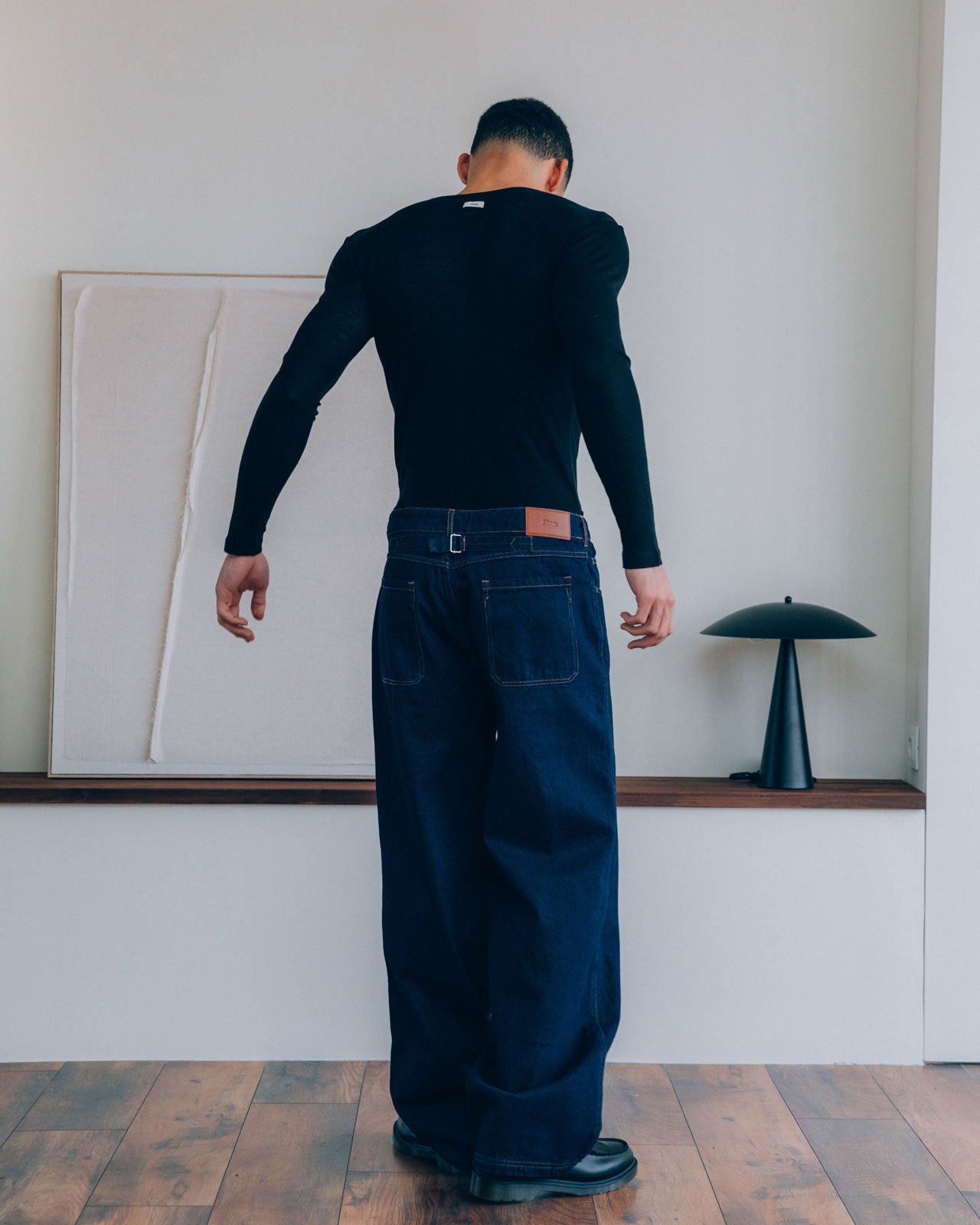 Thibaut’s partner in crime, Vitor, brings refinement to denim. We’ve considered every detail, like how the fabric stacks on your shoe and how a buckle below the waist can help you mix up your look.