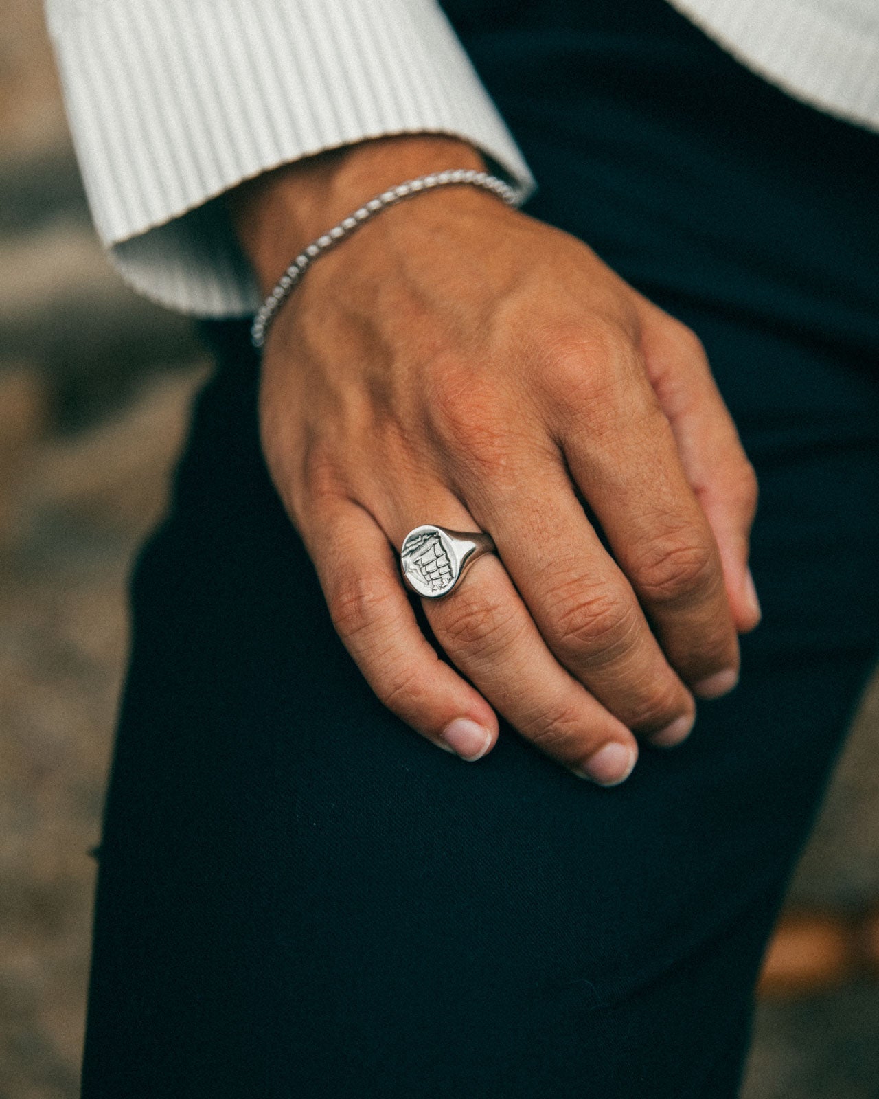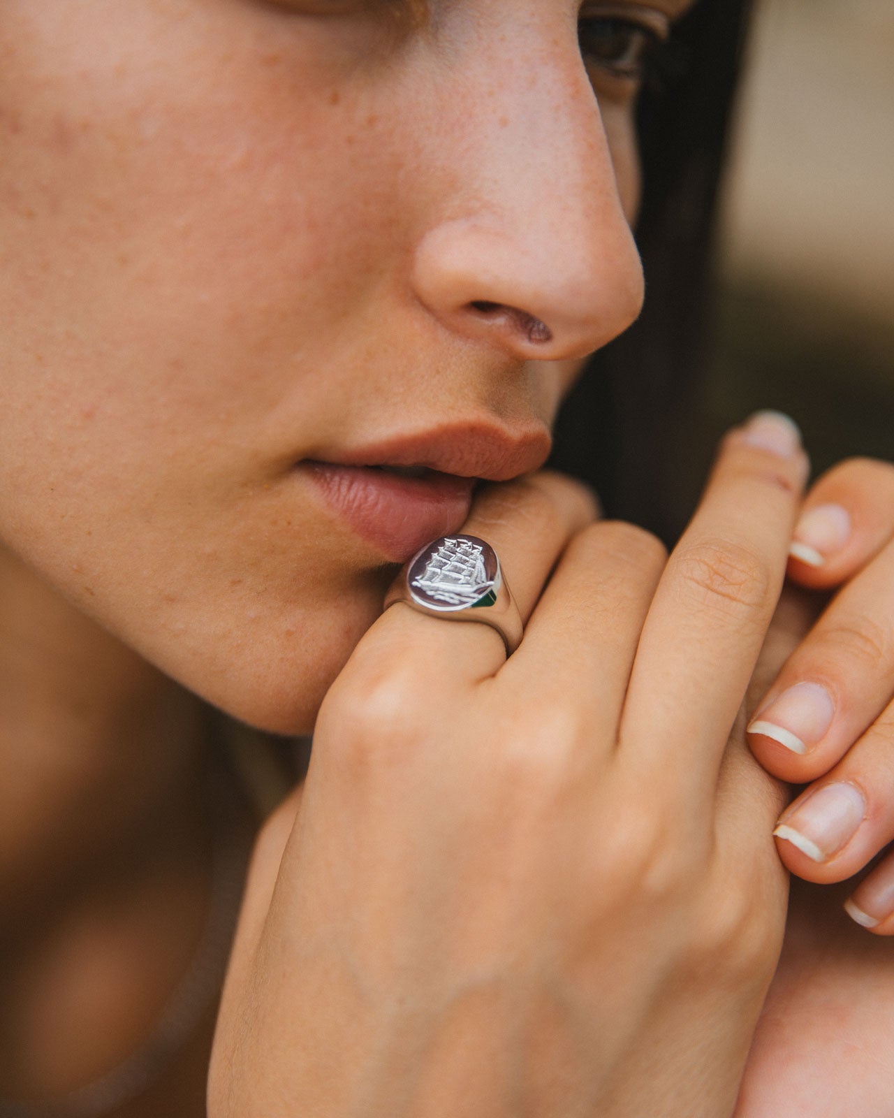 Introducing Zale, the classic signet ring featuring a finely engraved boat that embodies adventure and freedom. In Greek, the name Zale translates to "power of the sea" reflecting its maritime heritage and timeless elegance. Made from stainless steel, it’s waterproof and tarnish-free, ensuring it remains beautiful wear after wear.